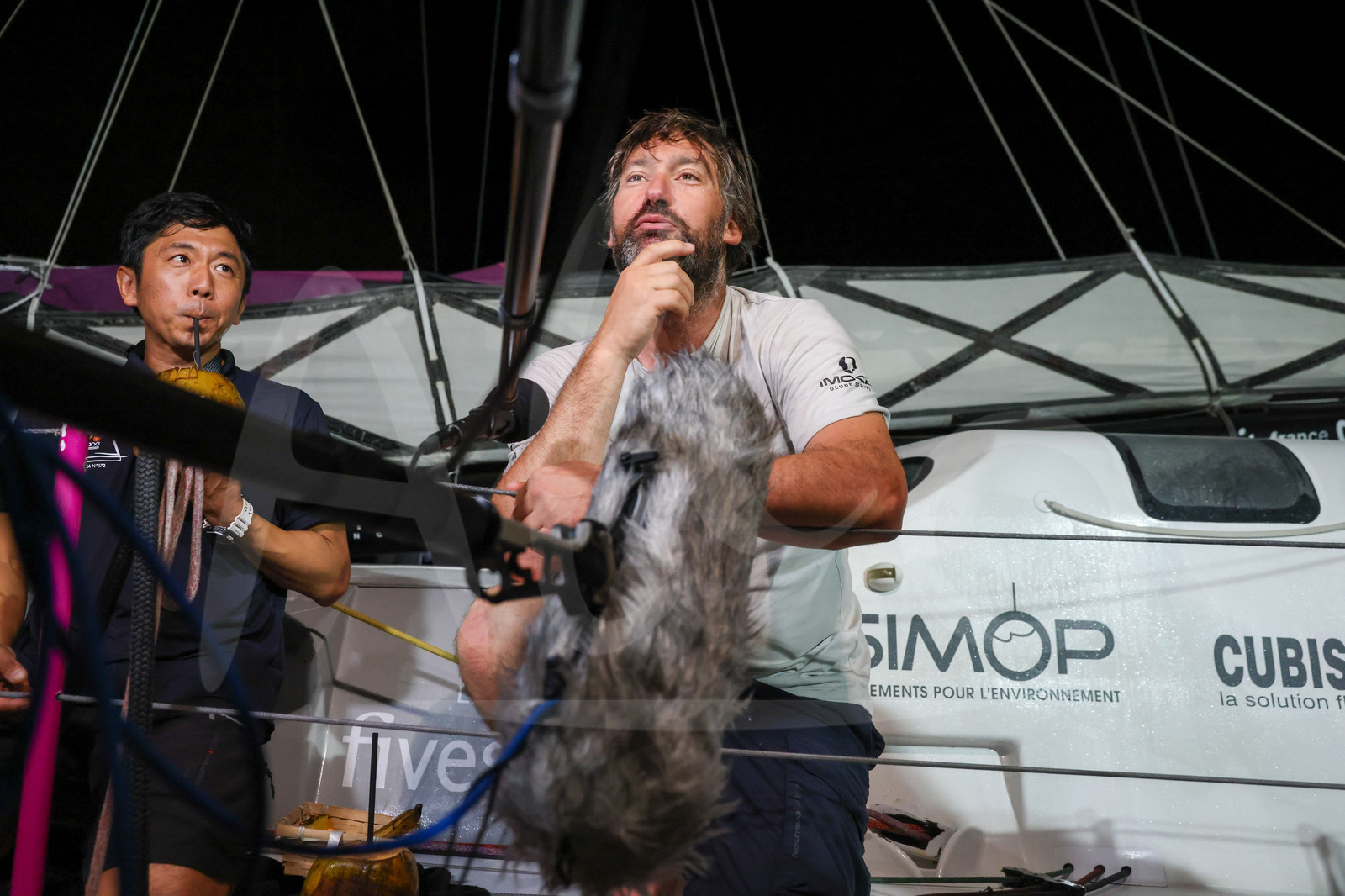 | Description | FORT-DE-FRANCE, MARTINIQUE : Imoca Fives Group - Lantana Environnement, skippers Louis Duc and Masa Suzuki speak with media after taking fourteenth place in their category of the Transat Café l'OR 2025 on November 12, 2025 in Fort-de-France, Martinique. (Photo by Jean-Marie Liot / Alea) |
