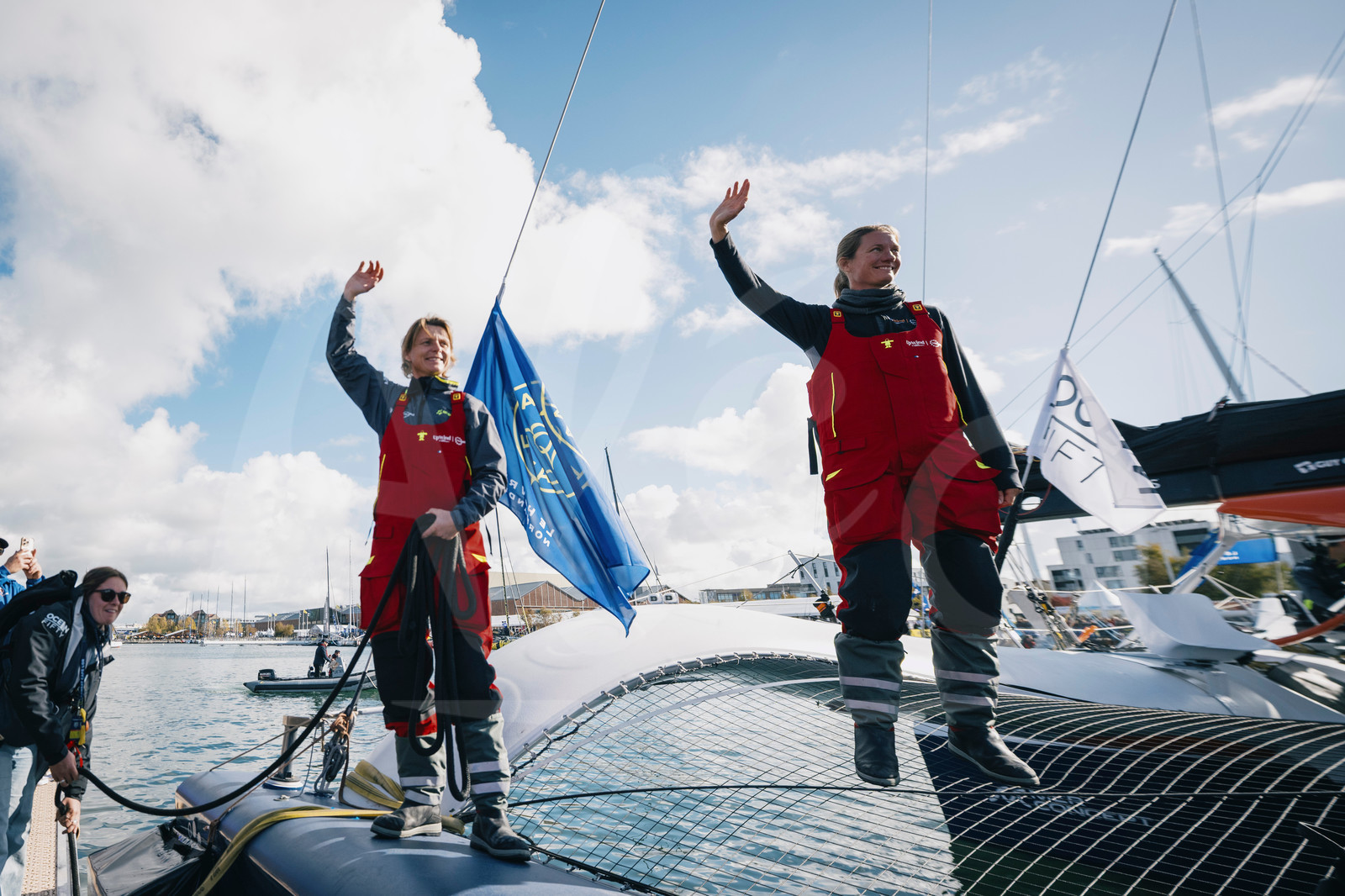 | Description | Ocean Fifty Upwind By Merconcept, skippers Anne-Claire Le Berre and Elodie-Jane Mettraux is pictured before leaving pontoons at the Transat Café L’Or Village in Le Havre, France, on October 25, 2025. (Photo by Vincent Curutchet / Alea) |