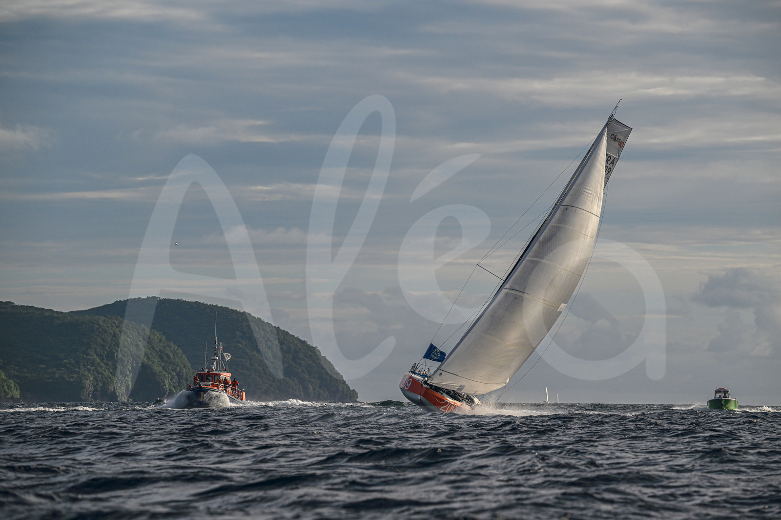 | Description | FORT-DE-FRANCE, MARTINIQUE : Class 40 SNSM.ORG Faites un don, skippers Corentin Douguet and Axel Trehin, are arriving second in their category of the Transat Café l'OR 2025 on November 17, 2025 in Fort-de-France, Martinique. (Photo by Jean-Louis Carli / Alea) |