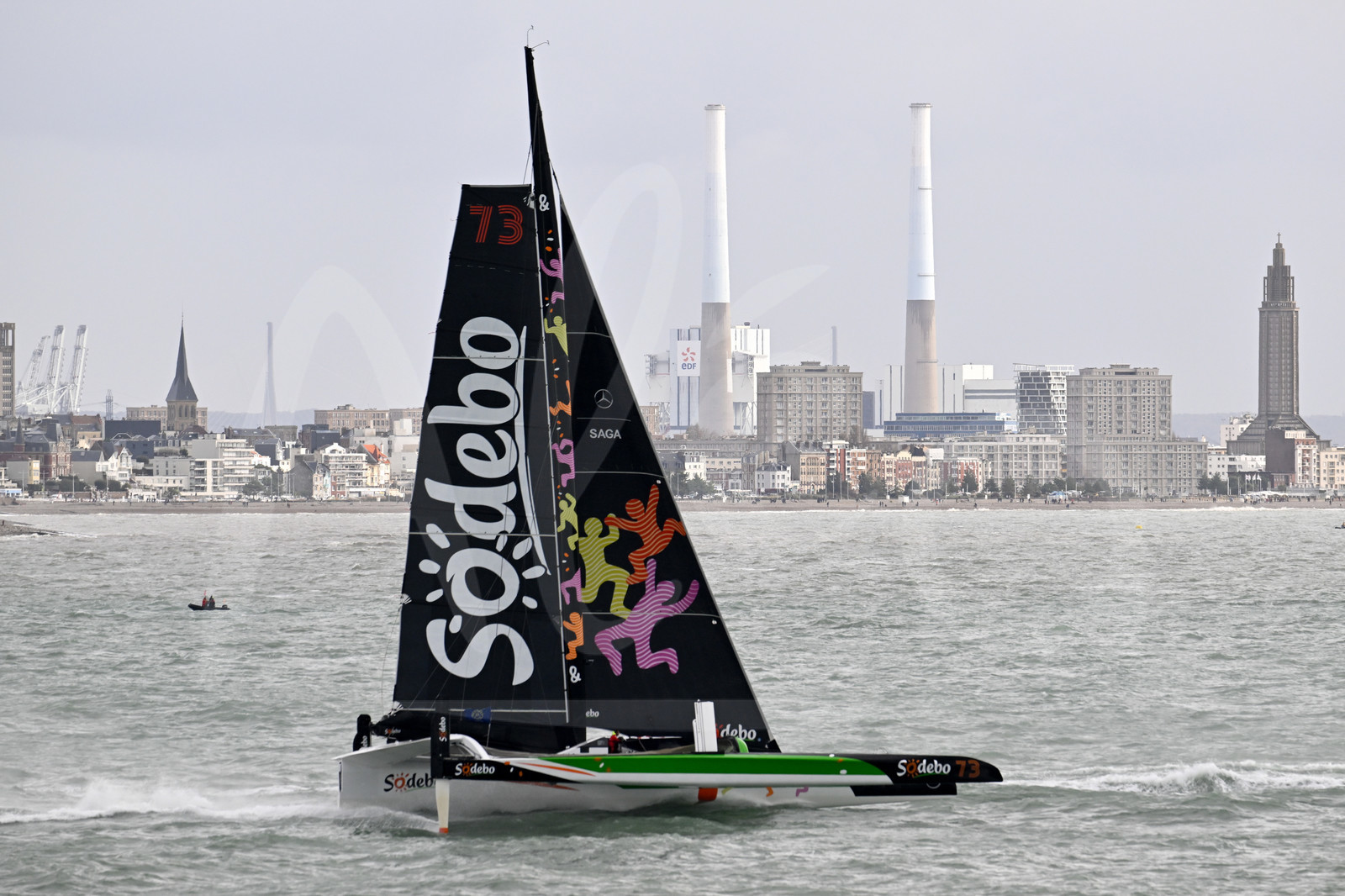 | Description | LE HAVRE, FRANCE: Sodebo Ultim 3 of the Ultim fleet at the start of the Transat Café l'OR 2025 on October 26, 2025 in Le Havre, France. (Photo by Jean-Louis Carli / Alea) |