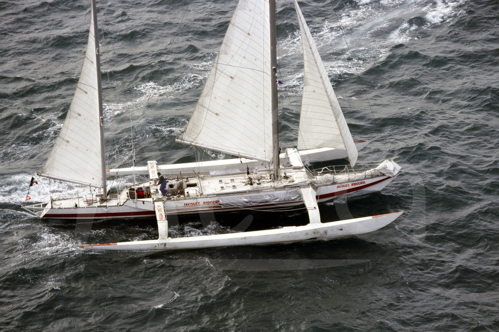 Description | SAILING - TRANSATLANTIC RACE - ROUTE DU RHUM HISTORY - SAINT MALO (FRA) START - PHOTO : Bernard Rubinstein / ALEA ROUTE DU RHUM 1982 - JACQUES RIBOUREL / SKIPPER : OLIVIER DE KERSAUSON (FRA) / 7TH |
