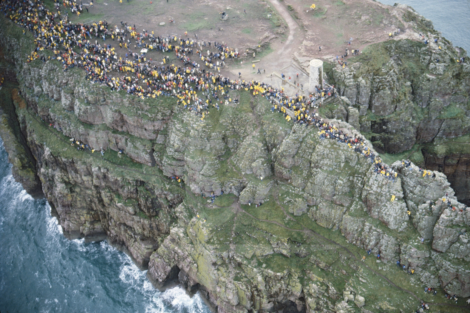 Description | Illustration du public au Cap Fréhel pendant le départ de la Route du Rhum, à Saint-Malo, Bretagne, le 7 Novembre 1982 - Photo Bernard Rubinstein / ALEA |