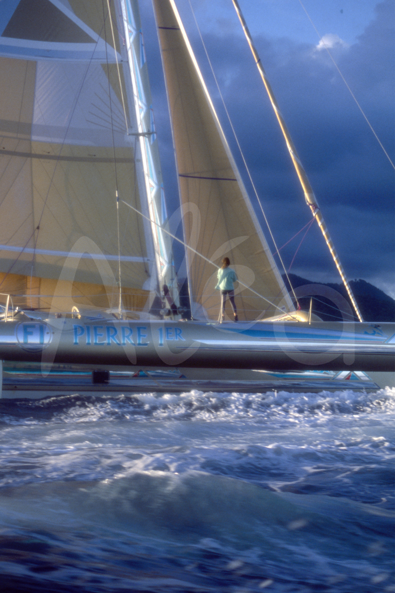 | Description | Vainqueur, Skipper Florence Arthaud, trimaran Pierre 1er, à l'arrivée de la Route du Rhum, à Pointe A Pitre, Guadeloupe, le 18 Novembre 1990 - Photo Bernard Rubinstein / ALEA |