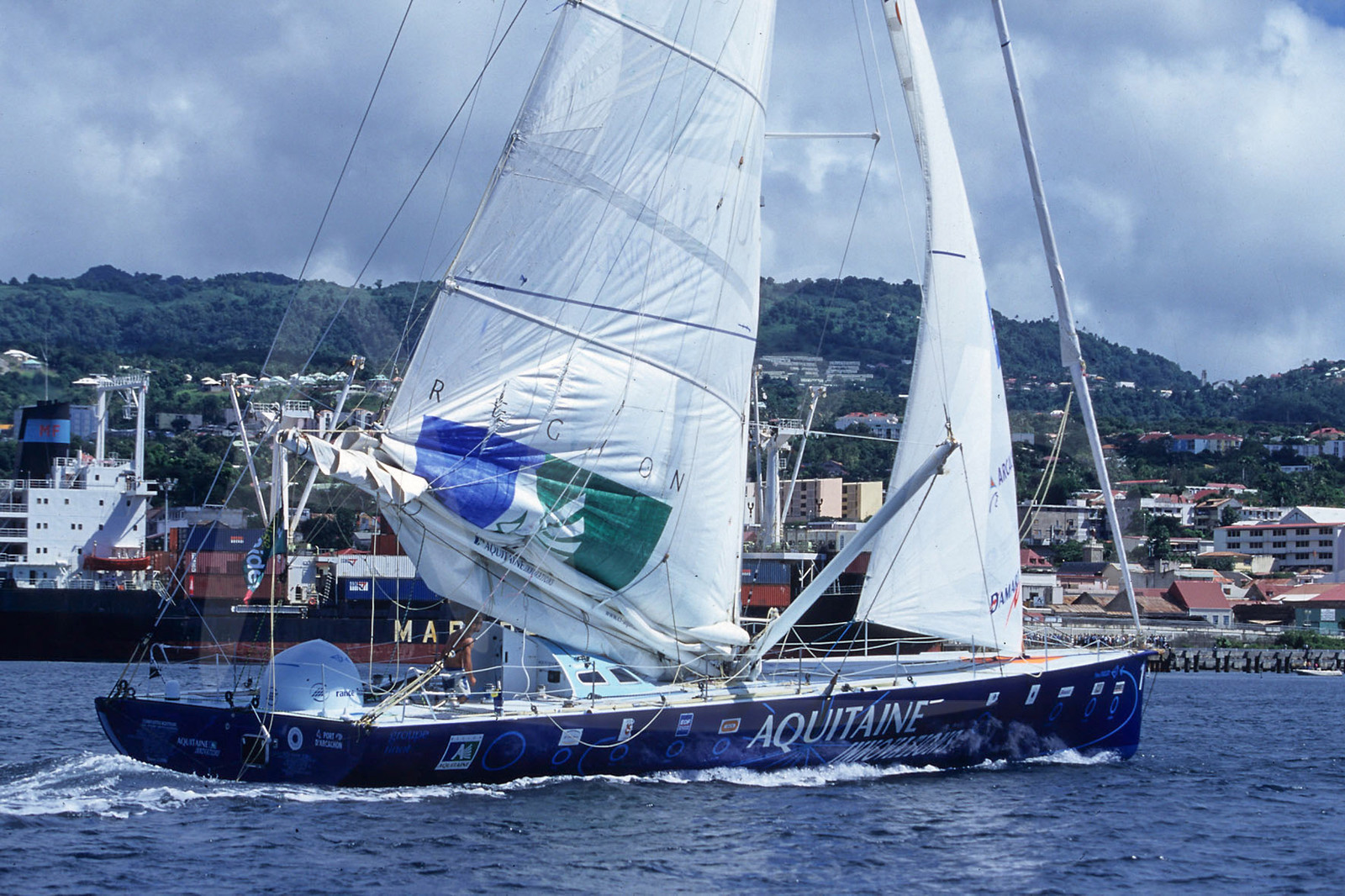 Description | Arrivée de Thomas Coville, vainqueur de la Route du Rhum 1998 en catégorie IMOCA à bord d'Aquitaine Innovation, à Pointe à Pitre, Guadeloupe, Photo : Jean-Marie Liot / Alea.###.Arrival Thomas Coville, winner Roue du Rhum 1998 in IMOCA ranking onboard Aquitaine Innovation, Pointe à Pitre, Guadeloupe, Photo : Jean-Marie Liot / Alea |