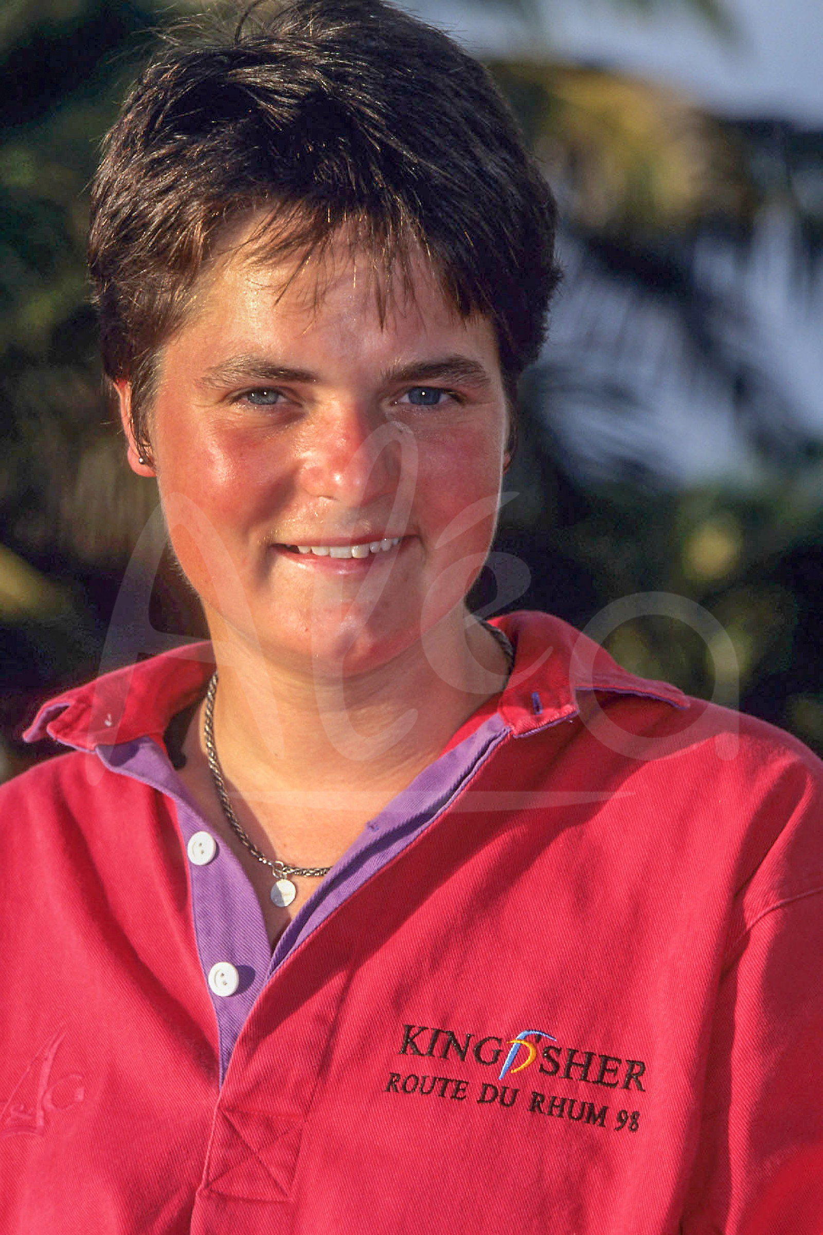 Description | Ellen MacArthur, skipper Kingfisher, vainqueur en catégorie 50 pieds à l'arrivée de la Route du Rhum 1998, à Pointe à Pitre, Guadeloupe, Novembre 1998, Photo : Jean-Marie Liot / Alea.###.Ellen MacArthur, skipper Kingfisher, winner in 50 feet ranking, during arrival la Route du Rhum 1998, in Pointe à Pitre, Guadeloupe, November 1998, Photo : Jean-Marie Liot / Alea |