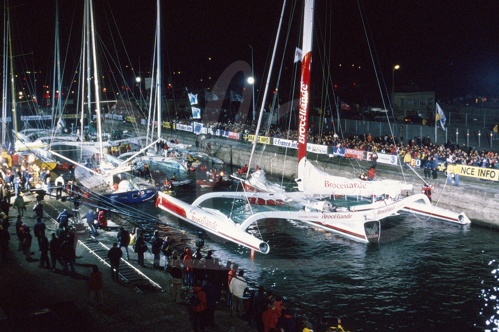 Description | Illustration de nuit au départ de la Route du Rhum, à St Malo, Bretagne, le 8 Novembre 1998 - Photo Bernard Rubinstein / ALEA |