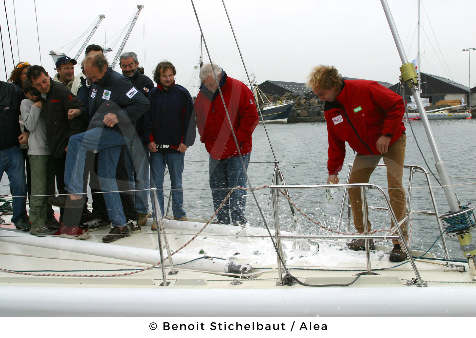 | Description | SAILING - ROUTE DU RHUM 2002 - START SAINT-MALO (FRA) - 08/11/2002 - PHOTO : BENOIT STICHELBAUT / ALEA.MONTRES YEMA TIR GROUPE BAPTISM / SKIPPER : MIKE BIRCH (CAN) 71 YEARS OLD - GODFATHER PHILIPPE MONNET (FRA). |
