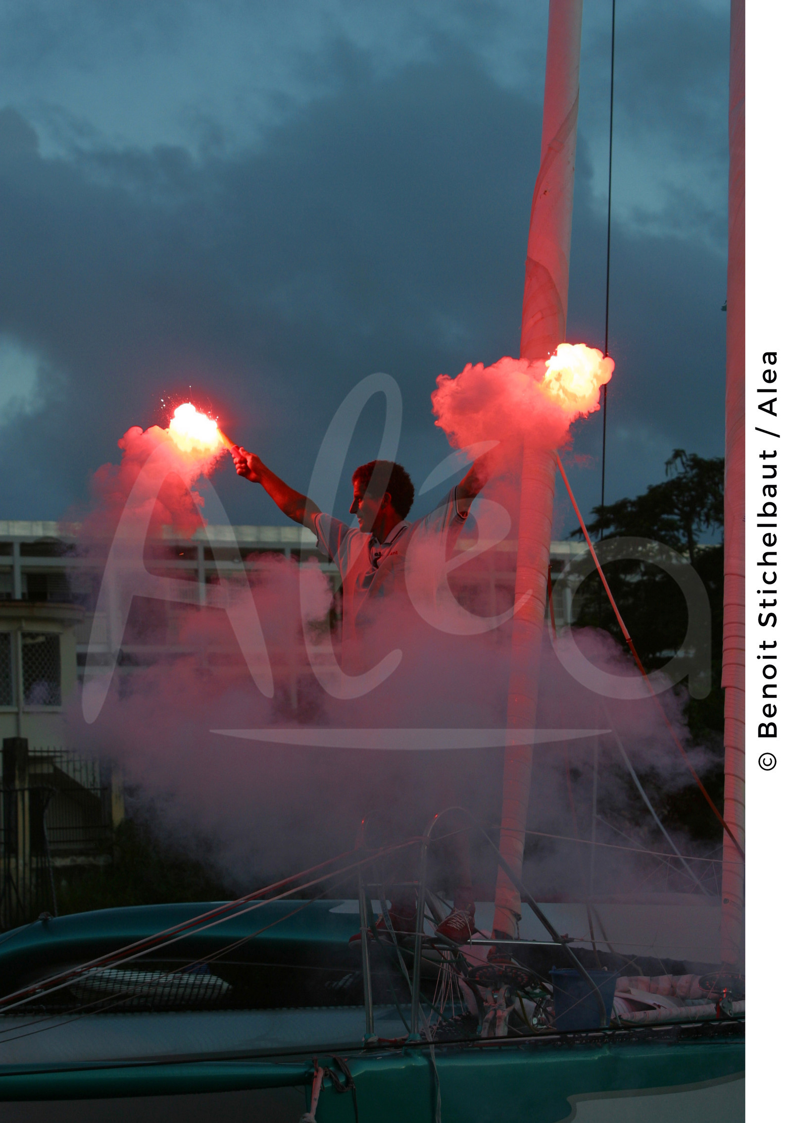 | Description | SAILING - ROUTE DU RHUM 2002 - FINISH POINTE A PITRE (FRA) - GUADELOUPE - MULTIHULLS 60' ORMA - 23/11/2002 - PHOTO : BENOIT STICHELBAUT / ALEA.GEANT / SKIPPER : MICHEL DESJOYEAUX (FRA) / WINNER MUTIHULLS 60'/ 13 DAYS 7 HOURS 53 MN 00 SECONDS |