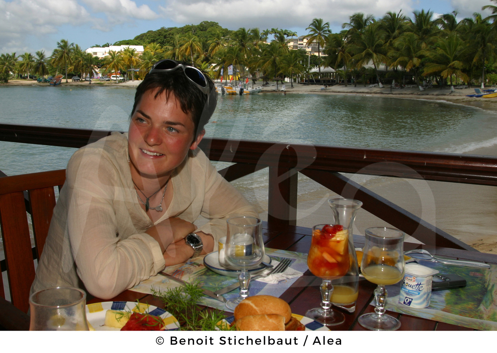 | Description | SAILING - ROUTE DU RHUM 2002 - FINISH POINTE A PITRE (FRA) - GUADELOUPE - MONOHULL 60' IMOCA - 23/11/2002 - ELLEN MACARTHUR EXCLUSIVE FEATURE - PHOTO : BENOIT STICHELBAUT / ALEA.FIRST BREAKFAST AND DEBRIEFING WITH KINGFISHER OFFSHORE CHALLENGES TEAM |