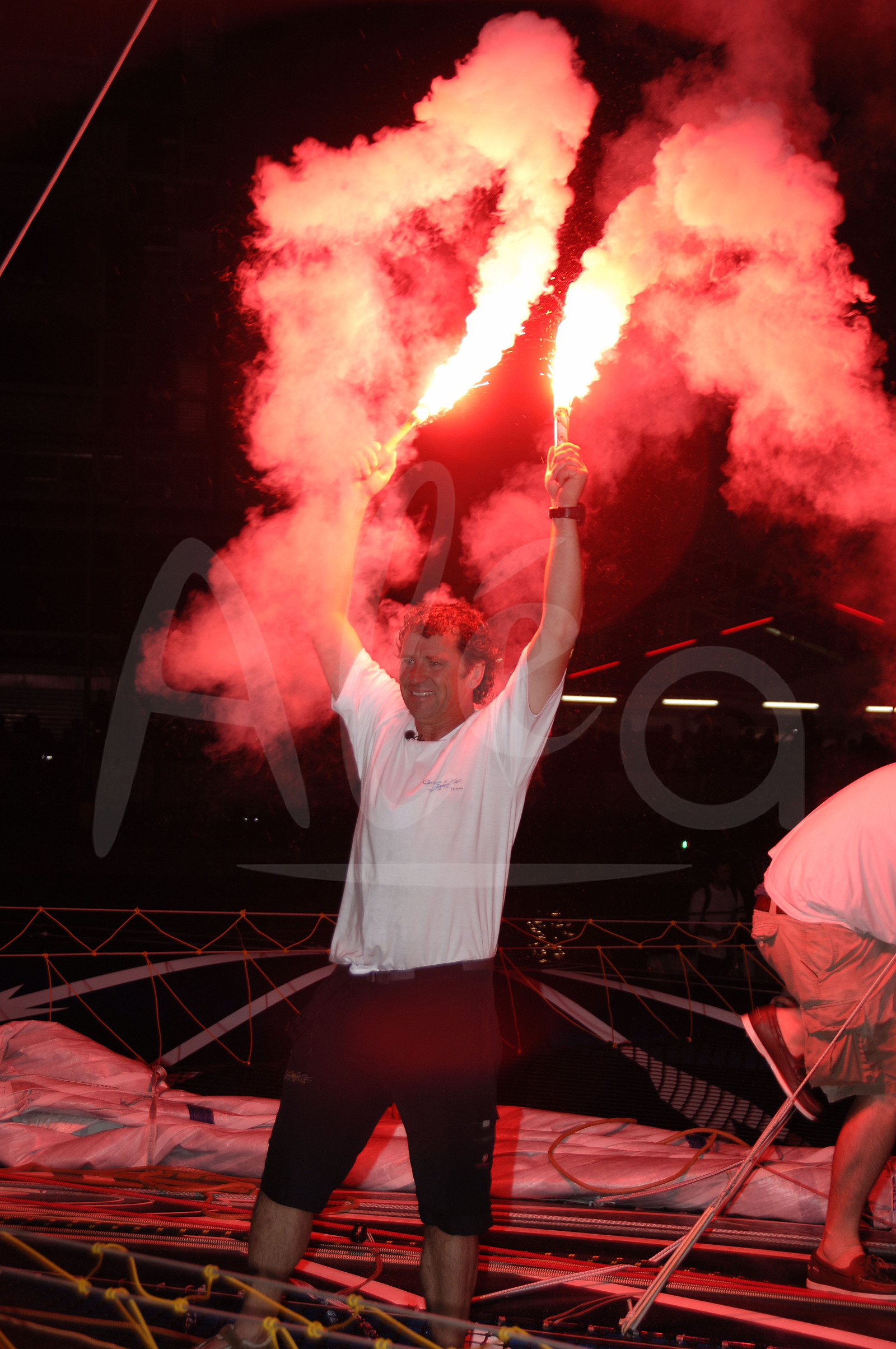| Description | Arrivée victorieuse de Lionel Lemonchoix dans la route du Rhum 2006, sur le multicoque GITANA 11 - record battu en 7j 17h 19mn 6s, le 6 Novembre 2006, à Pointe à Pitre, Guadeloupe - Photo Yvan Zedda / Alea.. |