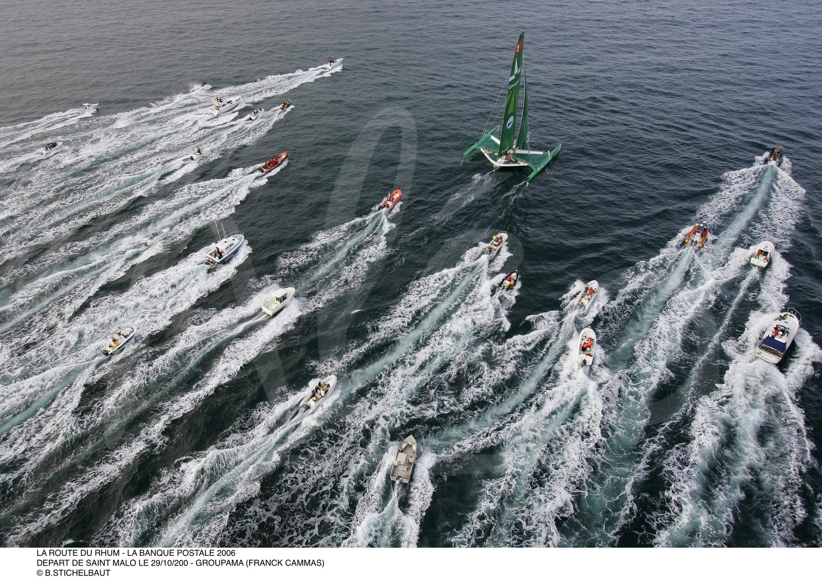 Description | LA ROUTE DU RHUM - LA BANQUE POSTALE 2006.DEPART DE SAINT MALO LE 29/10/200 - GROUPAMA (FRANCK CAMMAS) |
