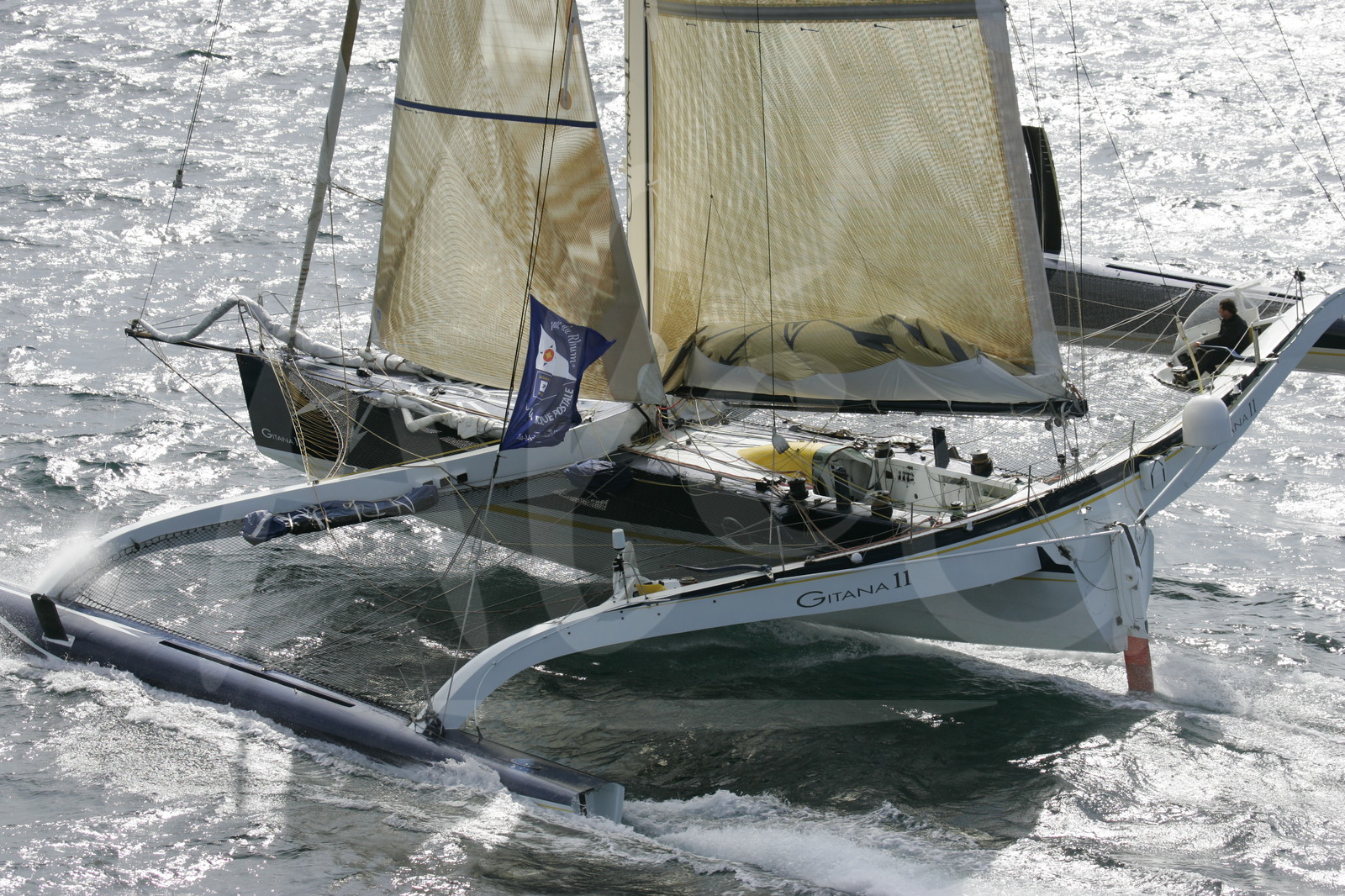 Description | ROUTE DU RHUM 2006.TRIMARAN 60' GITANA 11 - SKIPPER : LIONEL LEMONCHOIS.LE 27 SEPTEMBRE 2006.© B.STICHELBAUT / Alea |