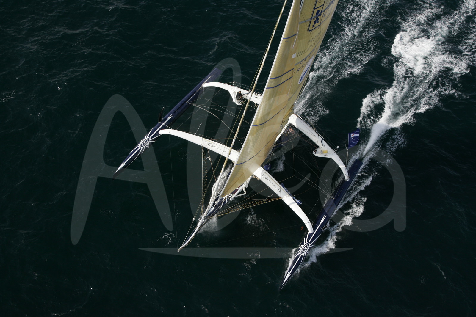 Description | ROUTE DU RHUM 2006.TRIMARAN 60' GITANA 11 - SKIPPER : LIONEL LEMONCHOIS.LE 27 SEPTEMBRE 2006.© B.STICHELBAUT / Alea |
