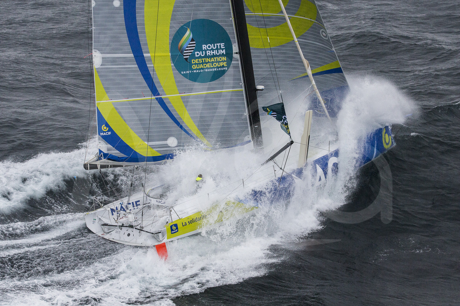 | Description | Aerial view of the IMOCA MACIF with french skipper Francois Gabart training in bad weather off Groix Island, south brittany, prior to the Route du Rhum Destination Guadeloupe on october 06, 2014 - Photo Jean Marie Liot / ALEA |