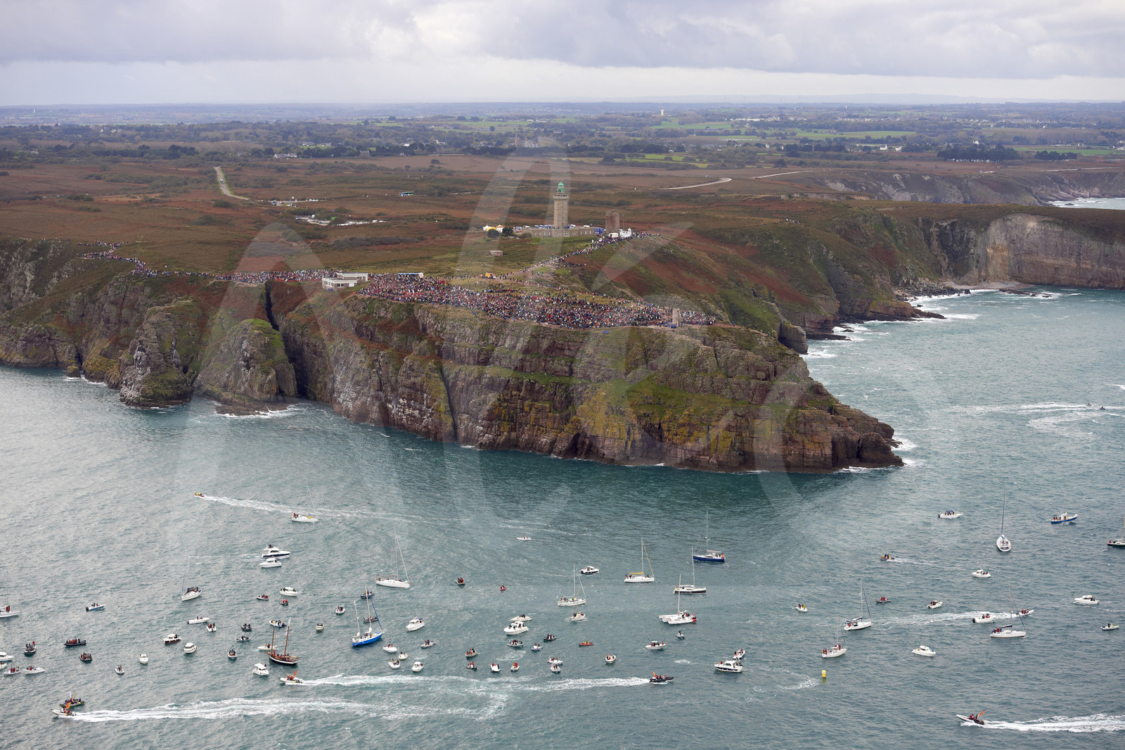 Description | Départ de Loick Peyron dans la route du Rhum 2014, sur le Maxi Solo Banque Populaire VII, le 2 Novembre 2014, à St-Malo, France - Photo Yvan Zedda / Alea |