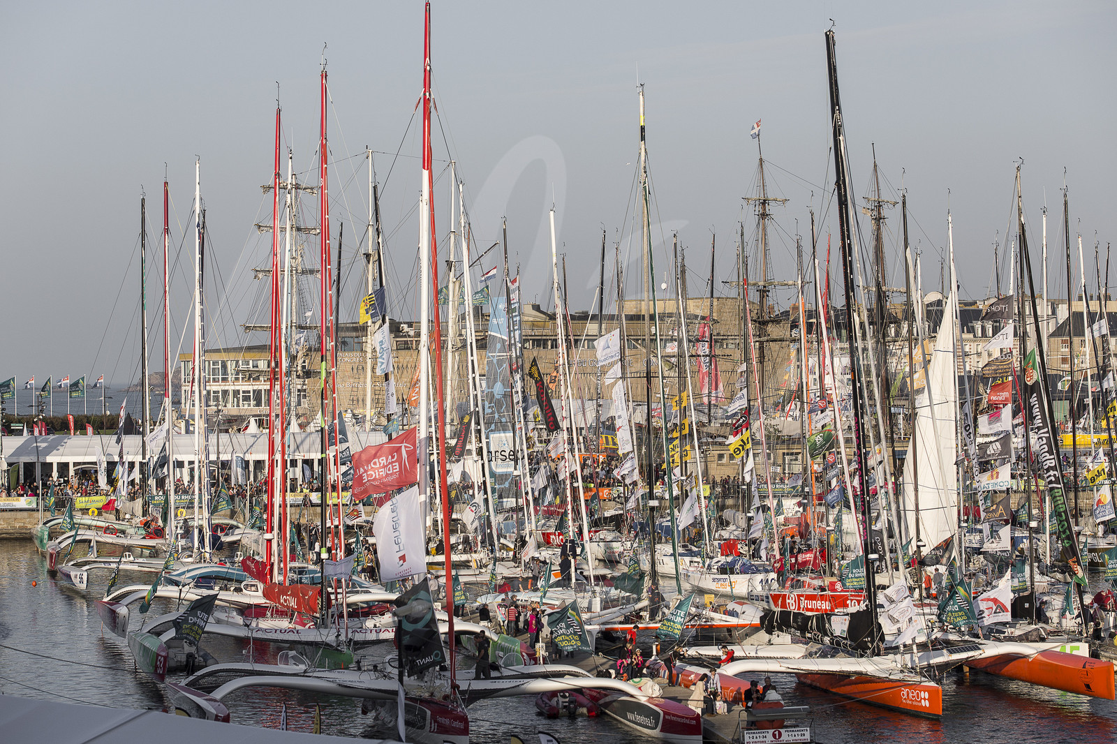Description | Illustration of the boats and public in Saint Malo on october 30, 2014 before the Route du Rhum sailing race to start on november 02, 2014 - Photo Jean Marie Liot / ALEA |