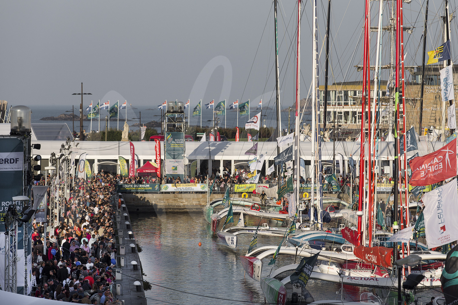 Description | Illustration of the boats and public in Saint Malo on october 30, 2014 before the Route du Rhum sailing race to start on november 02, 2014 - Photo Jean Marie Liot / ALEA |