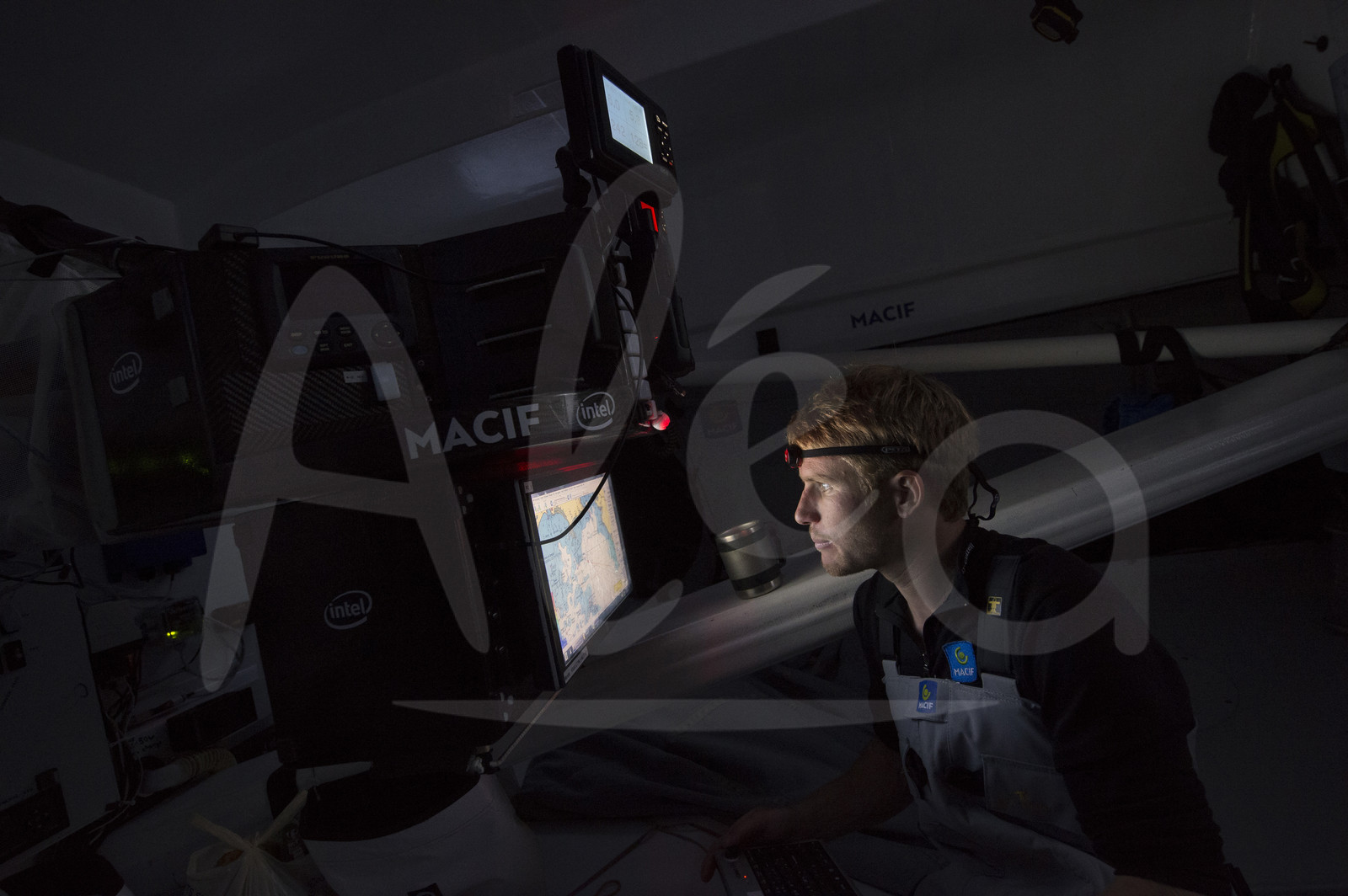 Description | French skipper Francois Gabart onboard the IMOCA MACIF training for the Route du Rhum off Port La Foret, Brittany, on july 19, 2014 - Photo Olivier Blanchet / ALEA |