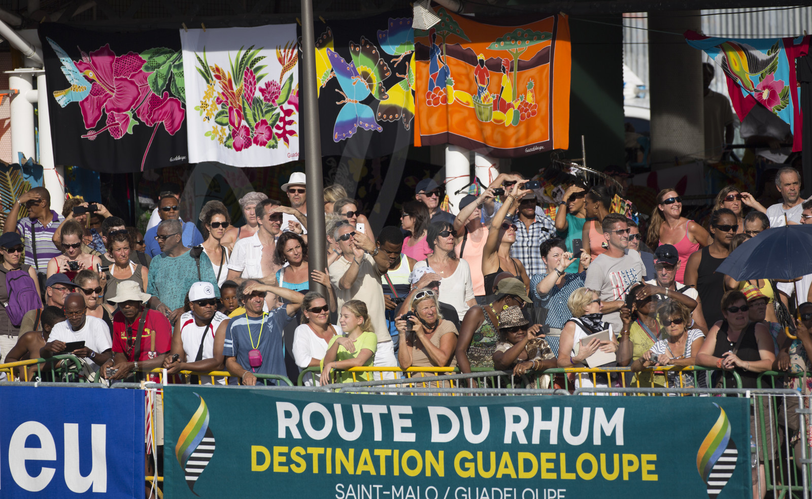 | Description | The crowd cheers for Yann Guichard, skipper of the maxi trimaran Spindrift 2, Ultime category, after he finishes 2nd in the Route du Rhum Destination Guadeloupe, in Pointe ‡ Pitre, Guadeloupe, on november 10, 2014 - Photo Mark Lloyd / ALEA |