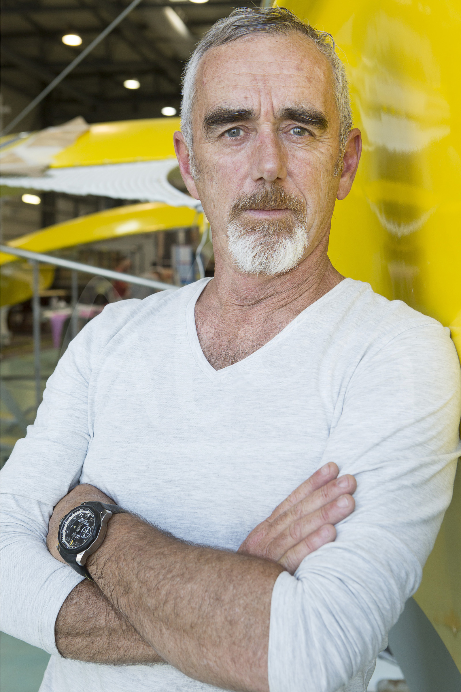 Description | Portrait of Loick Peyron alongside his "Happy" boat in Vannes, Brittany, Peyron wants to sail this sistership of Mike Birch Olympus Photo, winner of the 1st Route du Rhum 1978, during the 2014 edition, using old method - june 11, 2014 - Photo Jean Marie Liot / ALEA |