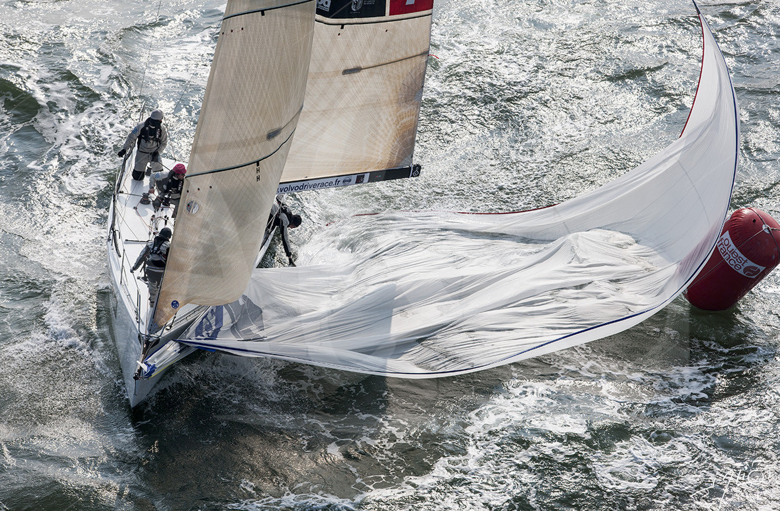 Description | Spi Ouest, Spi dans l'eau à la bouée. .La Trinité sur mer le 31/03/2013, M34. © Jean-Marie LIOT / Alea |