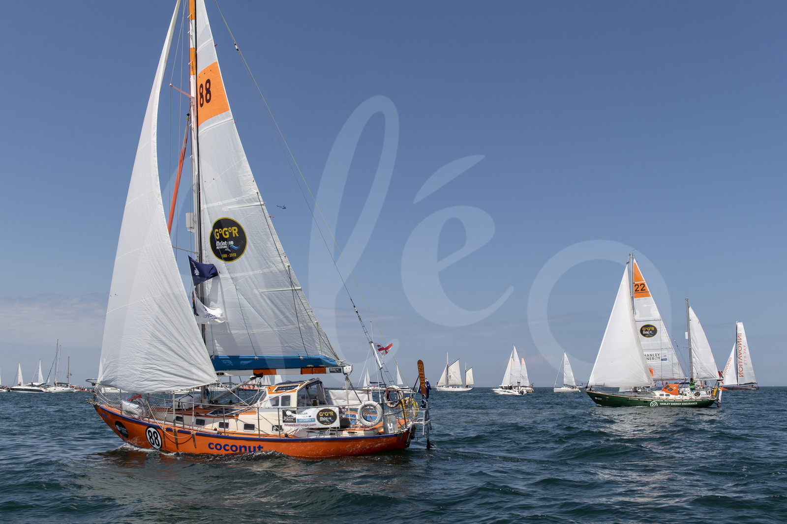 Description | Golden Globe Race Start - Mark John Sinclair (AUS) - skipper Coconut, in Les Sables d'Olonne, France, on July 1st, 2018 - Photo Olivier Blanchet / AleA |