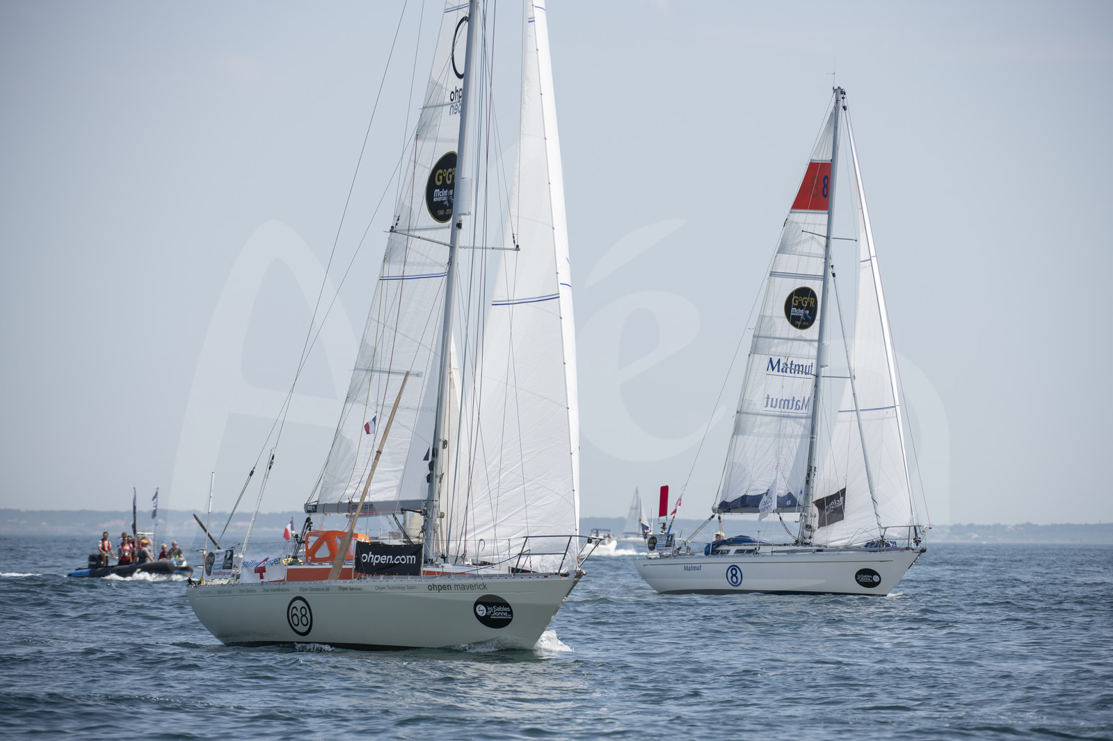 Description | Golden Globe Race Start - Mark Slats (Pays Bas) - Maverick / Jean-Luc Van Den Heede (France) - Matmut in Les Sables d'Olonne, France, on July 1st, 2018 - Photo Olivier Blanchet / AleA |
