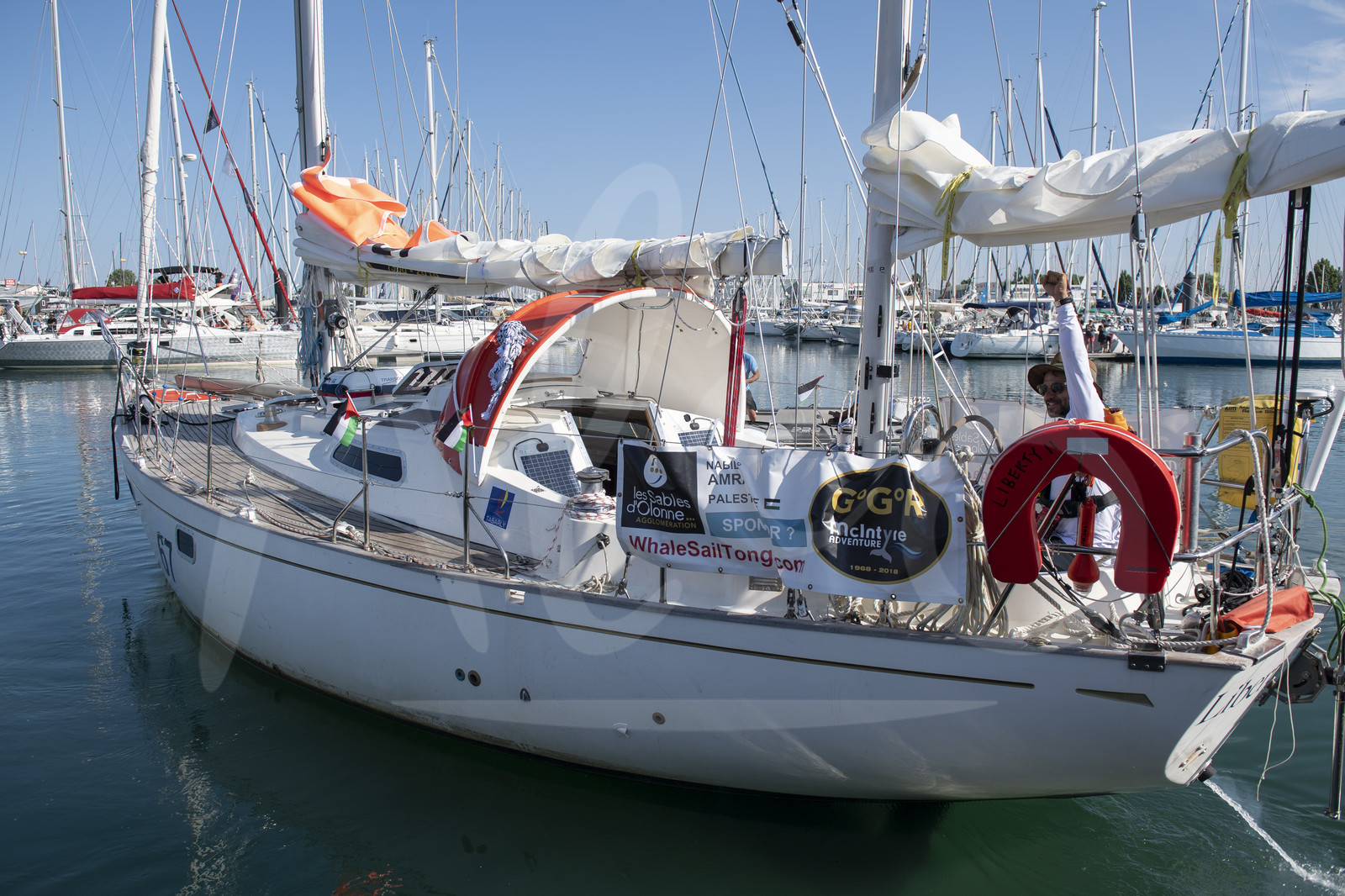 Description | Golden Globe Race Start - Nabil Amra (Palestine) - Liberty II, in Les Sables d'Olonne, France, on July 1st, 2018 - Photo Olivier Blanchet / AleA |