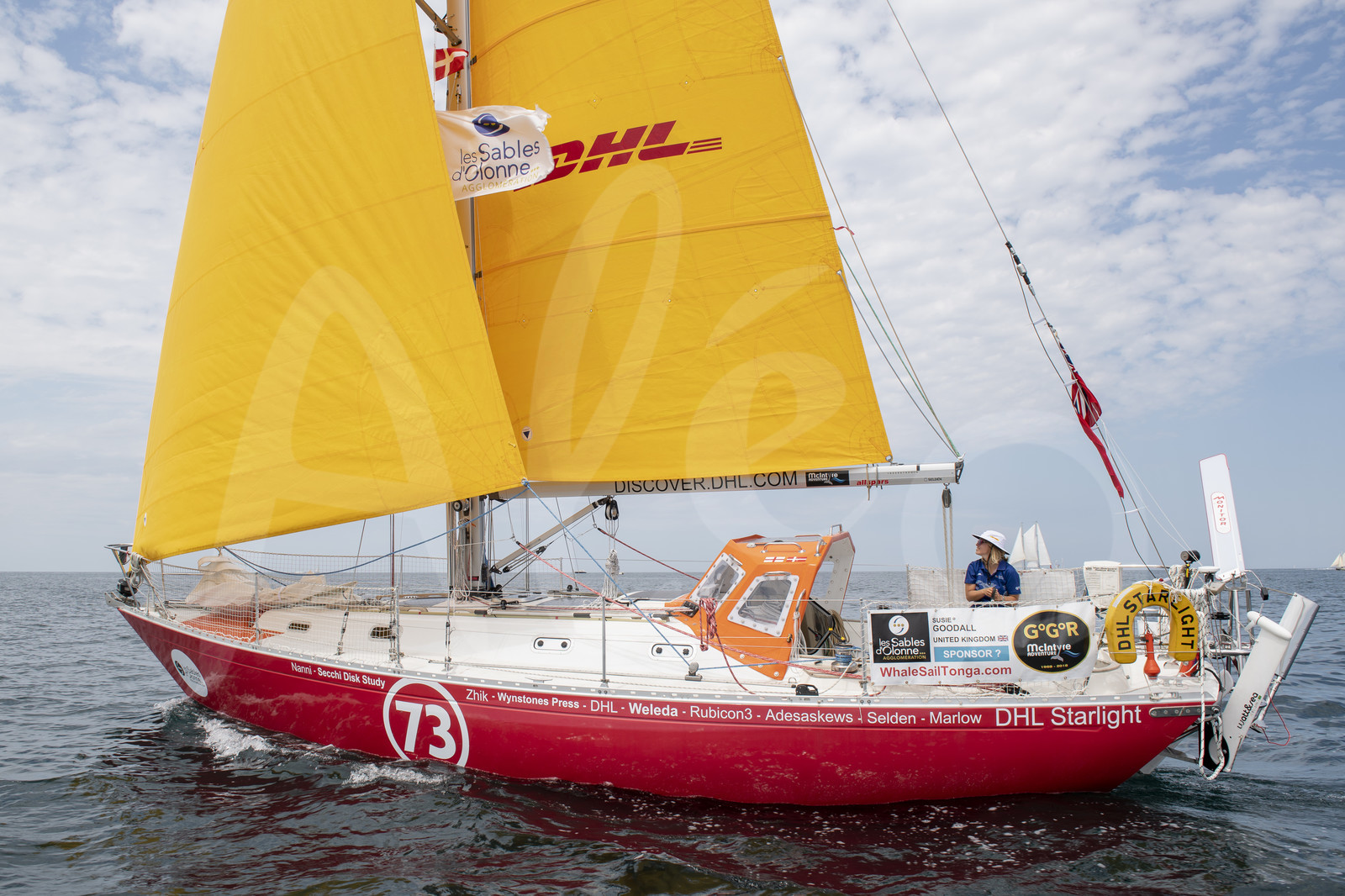 | Description | Golden Globe Race Start - Susie Goodall (GBR) - skipper DHL Starlight, in Les Sables d'Olonne, France, on July 1st, 2018 - Photo Olivier Blanchet / AleA |