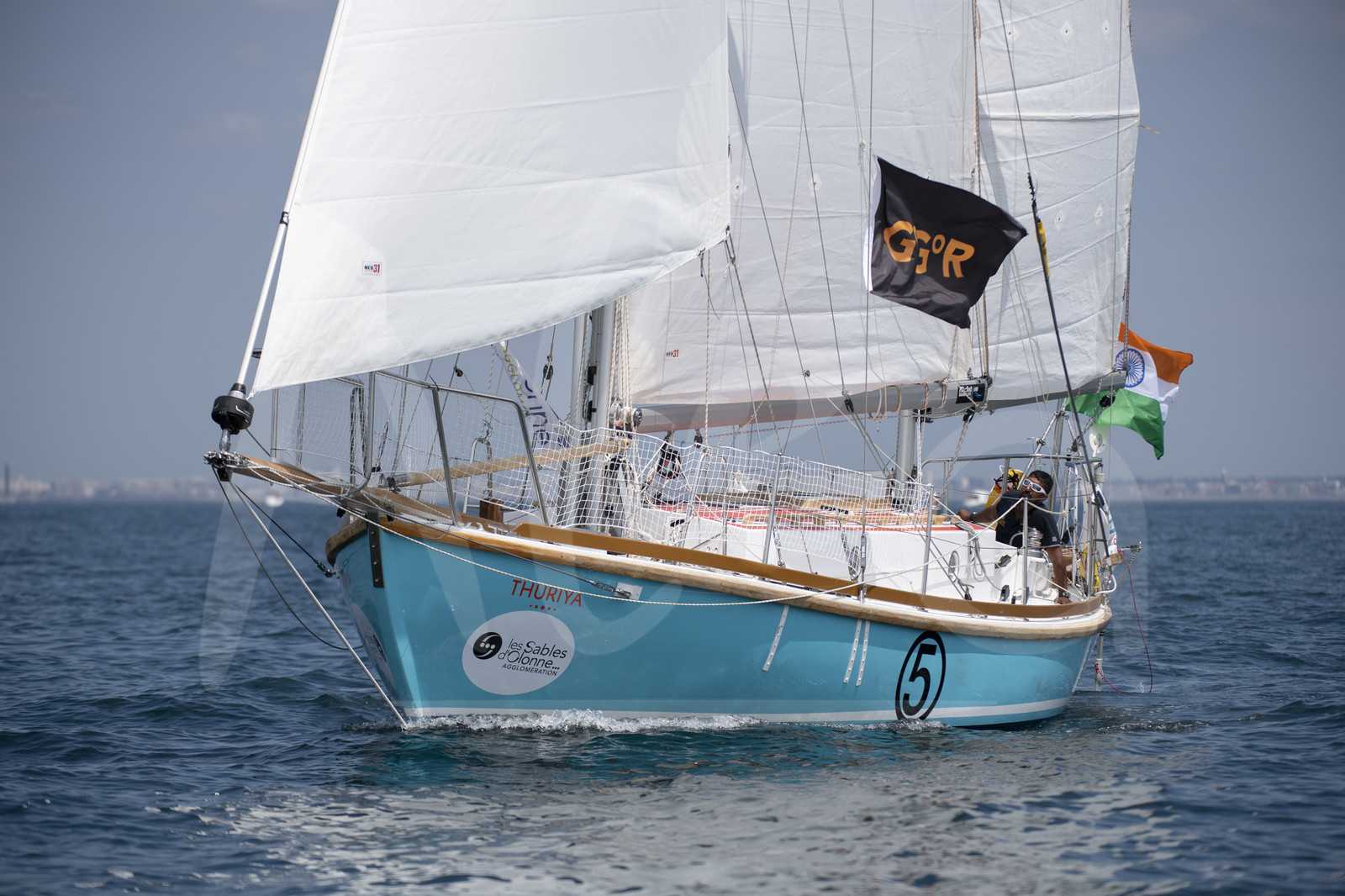 Description | Golden Globe Race Start - Abhilash Tomy (India) - skipper Thuriya, in Les Sables d'Olonne, France, on July 1st, 2018 - Photo Olivier Blanchet / AleA |