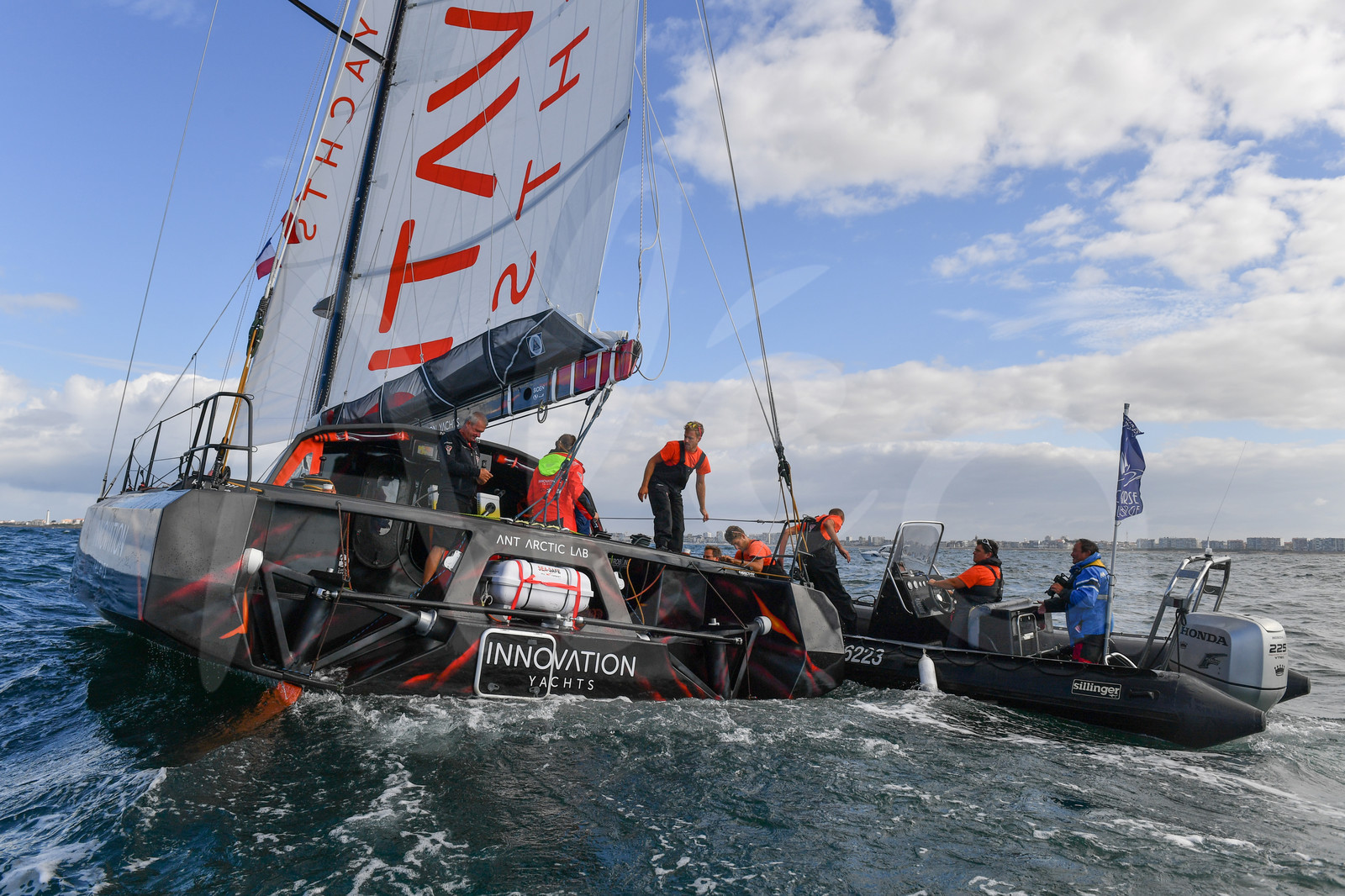 Description | Départ du tour du monde par les 5 océans de Norbert Sedlacek, le 25 Juillet 2018, aux Sables d'Olonne, France - Photo Christophe Favreau / Alea |