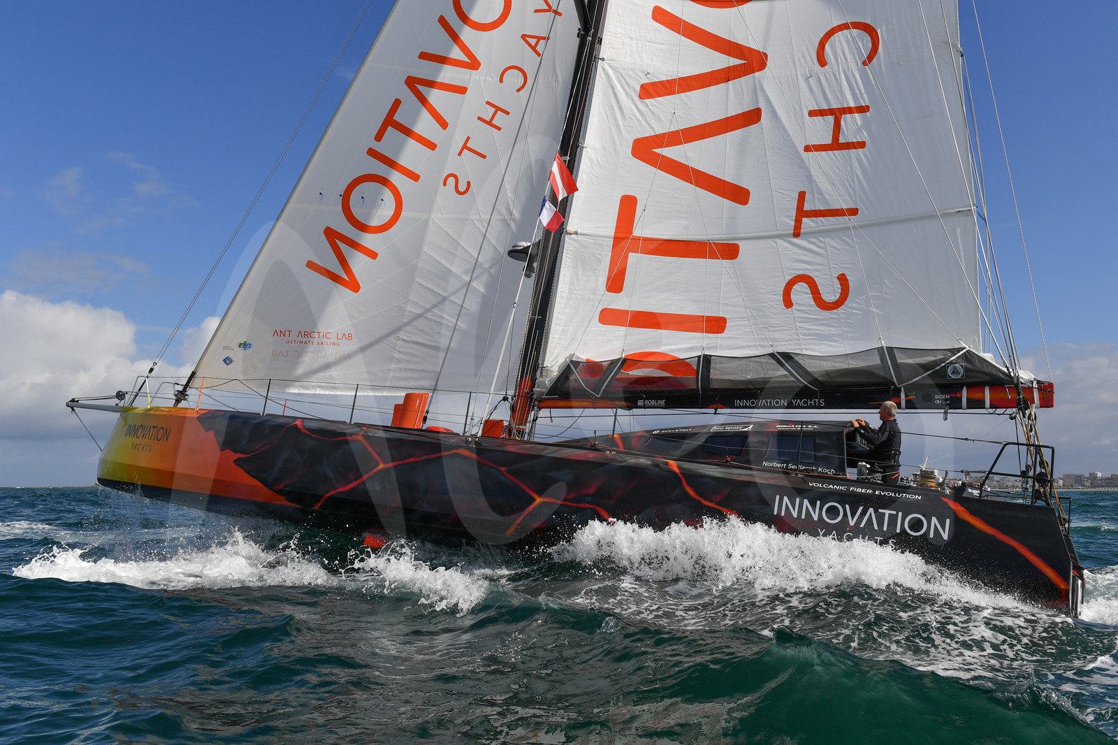 Description | Départ du tour du monde par les 5 océans de Norbert Sedlacek, le 25 Juillet 2018, aux Sables d'Olonne, France - Photo Christophe Favreau / Alea |