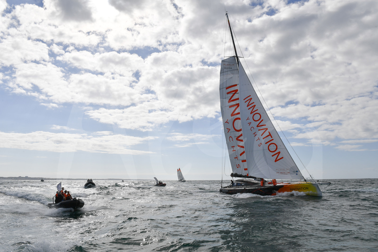 Description | Départ du tour du monde par les 5 océans de Norbert Sedlacek, le 25 Juillet 2018, aux Sables d'Olonne, France - Photo Christophe Favreau / Alea |