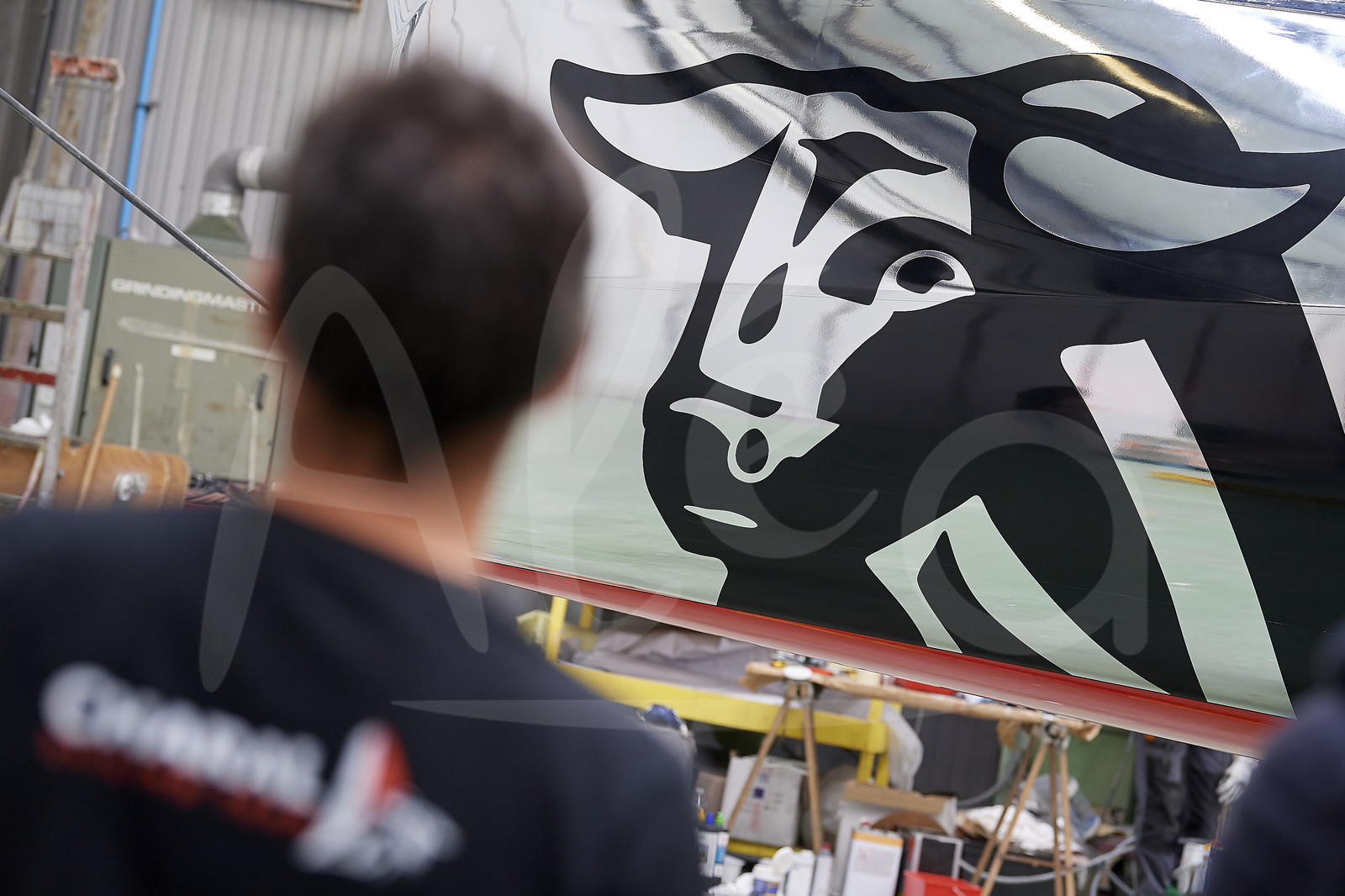| Description | Reveal of the new IMOCA CHARAL, skipper Jeremie BEYOU, at CDK shipyard in Port La Foret (France), on August 21st, 2018 - Photo Yvan Zedda / Alea |