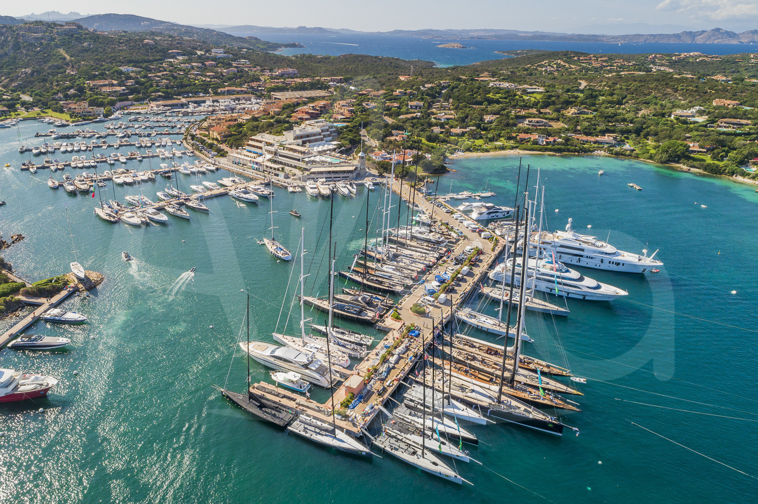 Description | Graphic aerial illustration of the harbour, during the Maxi Yacht Rolex Cup in Porto Cervo, on September 2nd, 2018 - Photo Carlo Borlenghi / Studio Borlenghi / Alea |