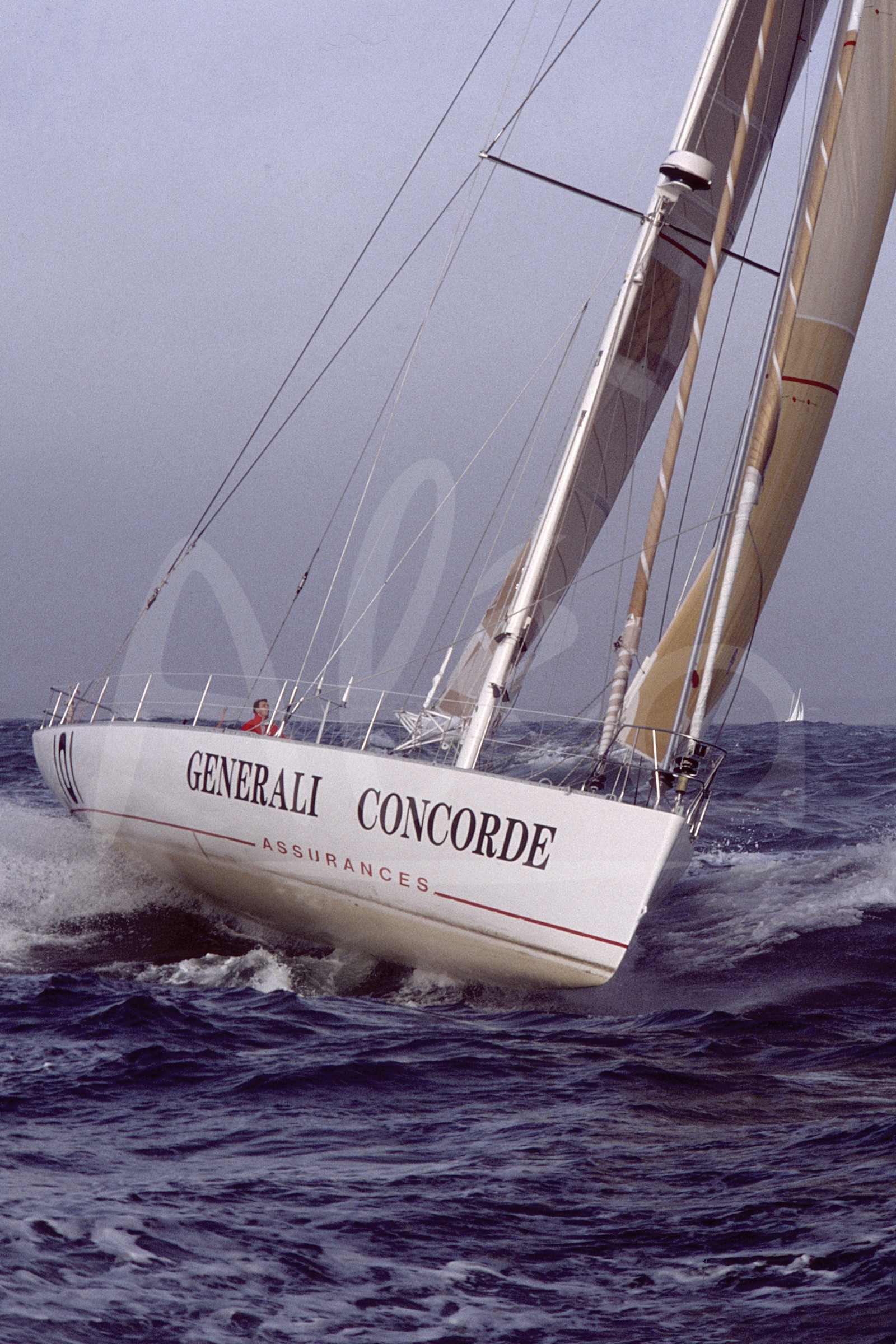 Description | Alain GAUTIER, French skipper of IMOCA boat Generali Concorde, just before start of the sailing round-the-world yacht race Vendee Globe, first edition, on November 26th, 1989 © Bernard Rubinstein / Alea |