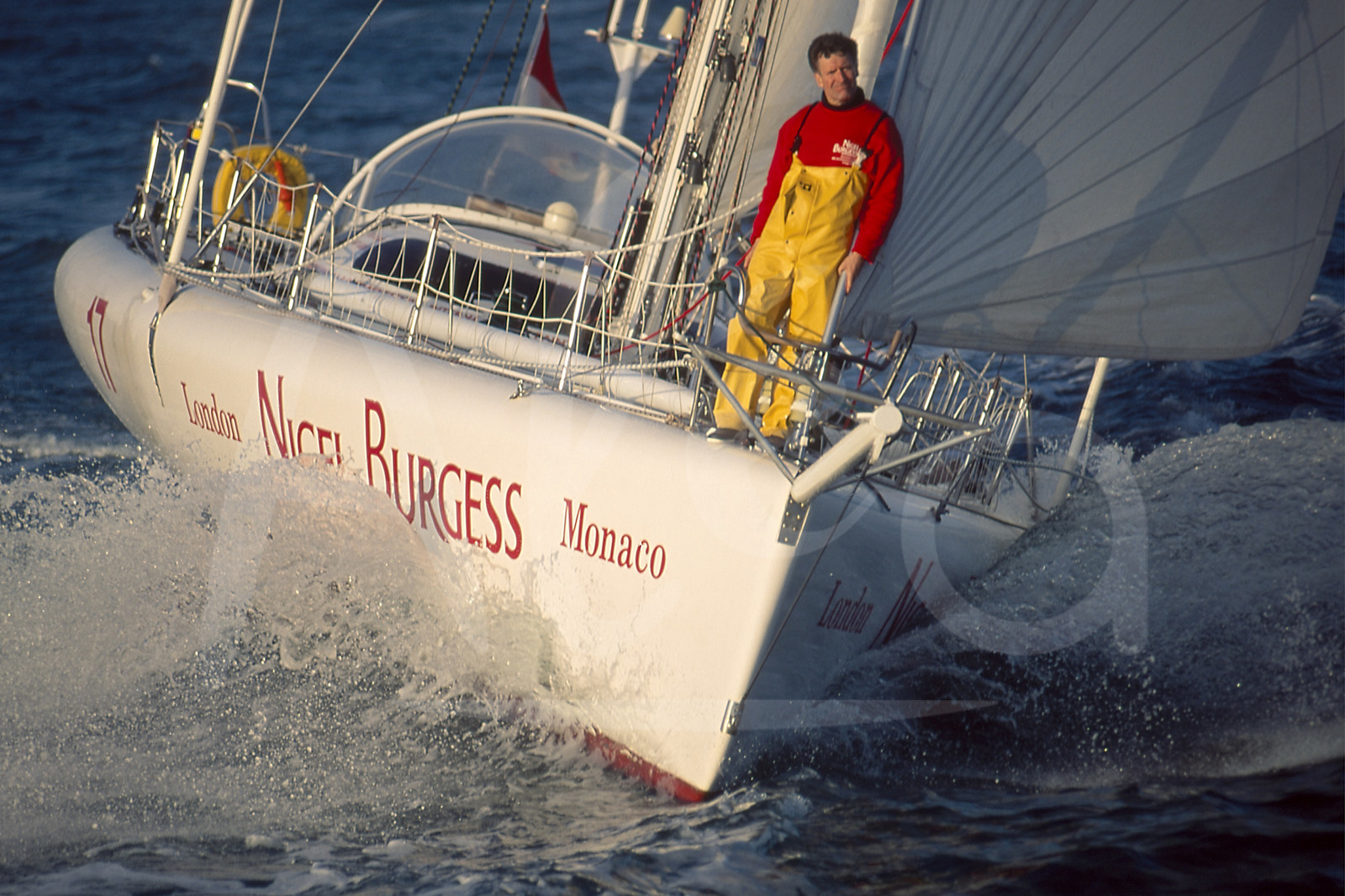 Description | Nigel BURGESS, Nigel Burgess Yachts, training before start of the round-the-world solo sailing yacht race Vendee Globe in Les Sables d'Olonne, West France, on November 19th, 1992 - he will be found drowned later during the race - © Bernard Rubinstein / Alea |