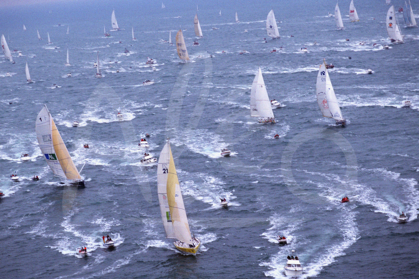 Description | LES SABLES D'OLONNE, FRANCE - NOVEMBER 3: Boats are competing during the start of the sailing circumnavigation solo race Globe Challenge, on November 3, 1996, off Les Sables d'Olonne, France. (Photo by Francois Mousis/Alea) |