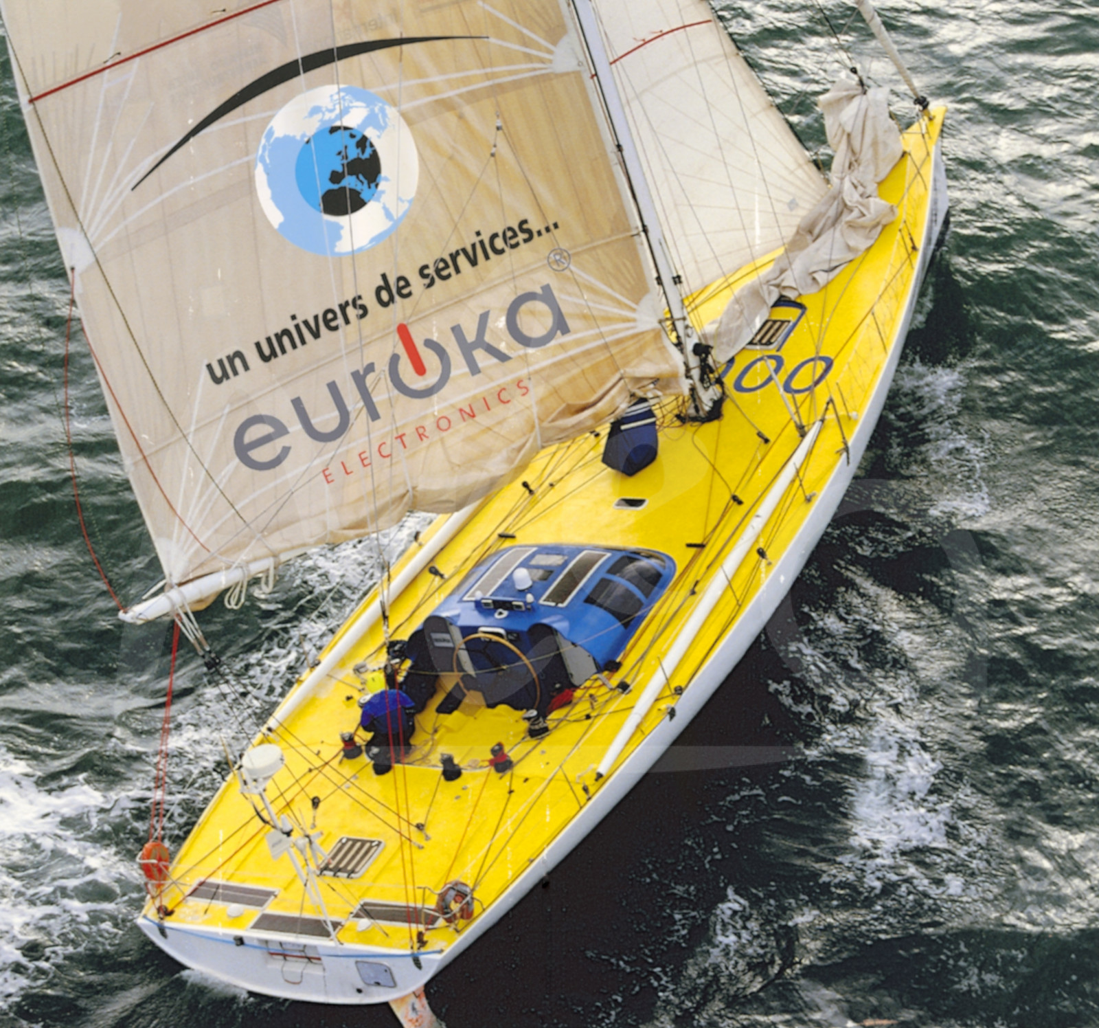 | Description | French skipper Eric DUMONT, Euroka Services, training before start of the sailing round-the-world yacht race Vendee Globe, on October, 2000 © Bernard Rubinstein / Alea |
