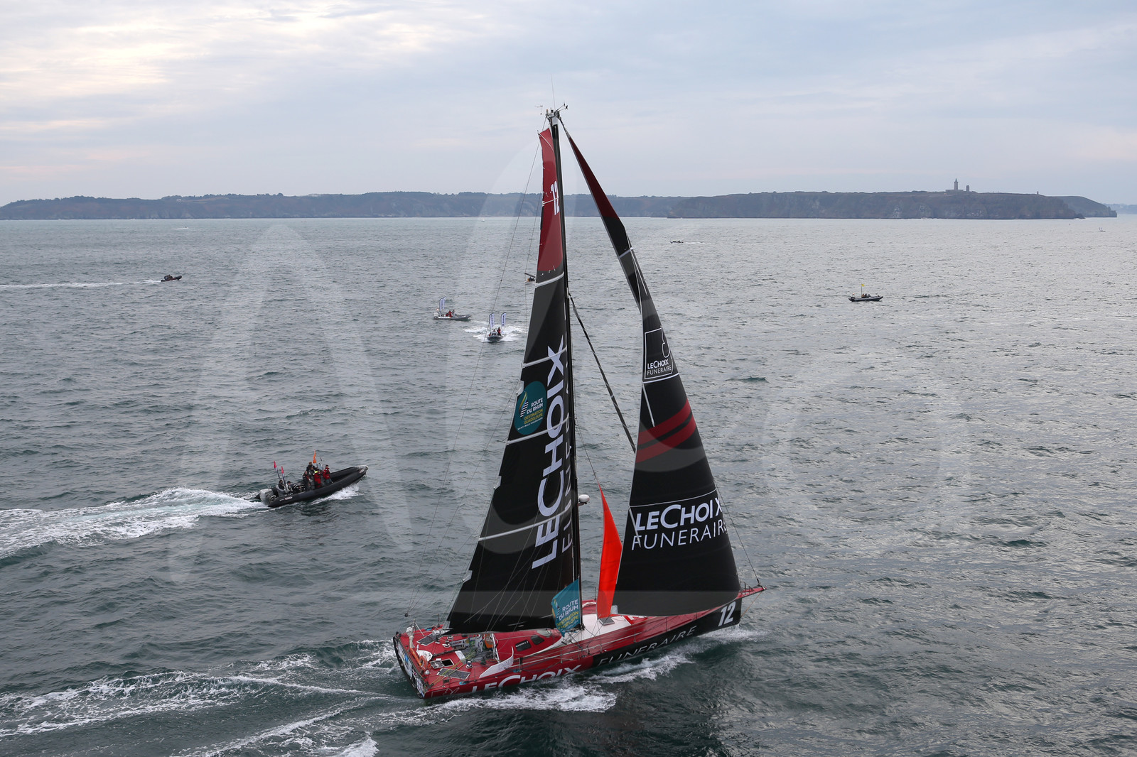 | Description | RhumMono Le Choix Funeraire at Cape Frehel during start of the Route du Rhum 2018, on November 4th, 2018 in St-Malo, north Brittany, France - Photo Jean-Marie Liot / Alea |