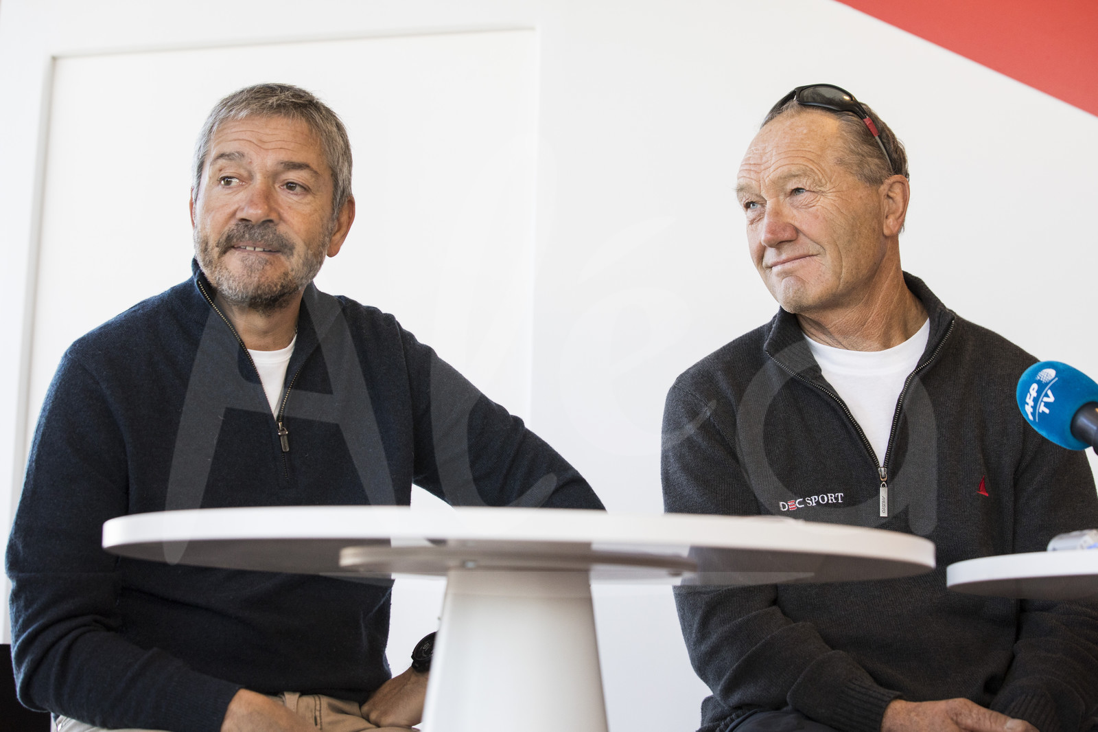 Description | Press conference for Francis Joyon, skipper ultime IDEC Sport, with Patrice Lafargue (Groupe IDEC Pdt), during the pre-start of the Route du Rhum 2018, on November 2nd, 2018 in St-Malo, north Brittany, France - Photo Jean-Marie Liot / Alea |