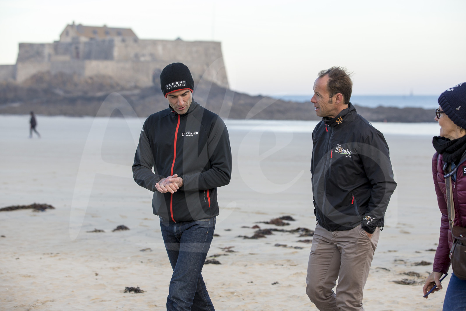 Description | Ultime skippers, Armel Le Cleac'h, Banque Populaire IX with Thomas Coville, Sodebo Ultim', on Sillon beach, during the pre-start of the Route du Rhum 2018, on November 3rd, 2018 in St-Malo, north Brittany, France - Photo Jean-Marie Liot / Alea |