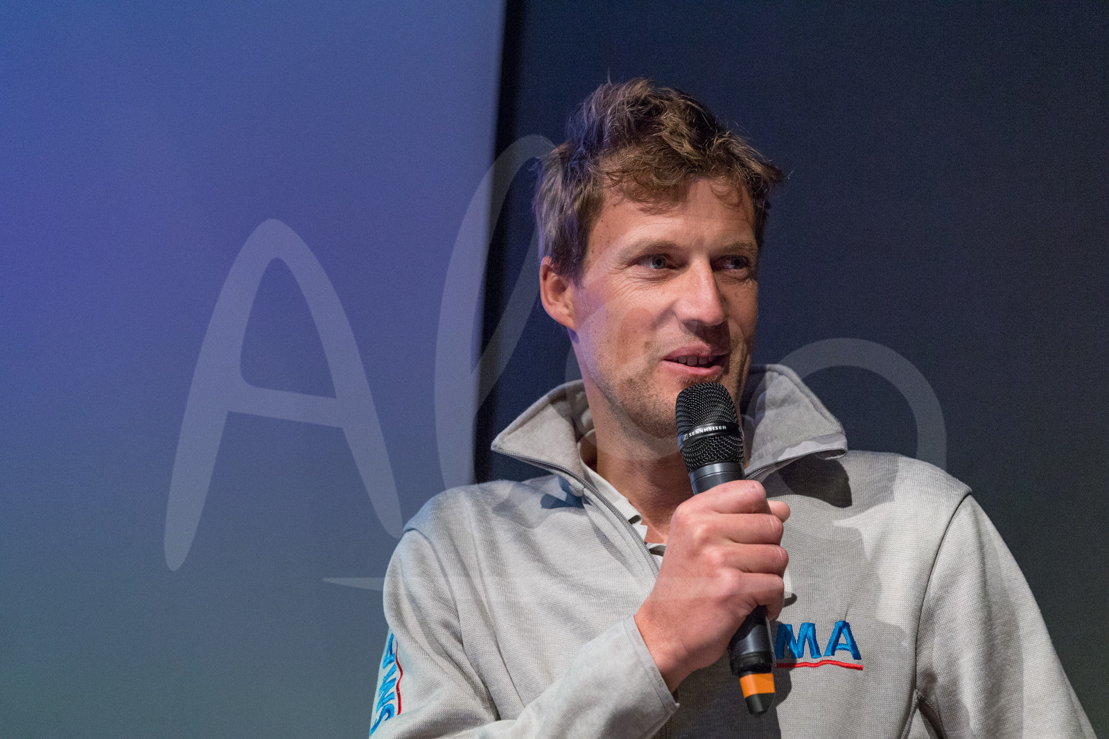 Description | skipper Paul Meilhat attending Imoca Globe series press conference during the pre-start of the Route du Rhum 2018, on October 31st, 2018 in St-Malo, north Brittany, France - Photo Jean-Marie Liot / Alea |