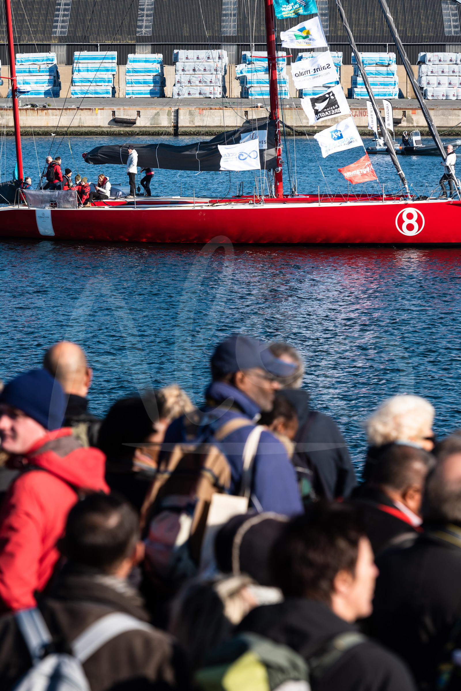 Description | Ambiance public on pontoons during the pre-start of the Route du Rhum 2018, on November 3rd, 2018 in St-Malo, north Brittany, France - Photo Jean-Louis Carli / Alea |