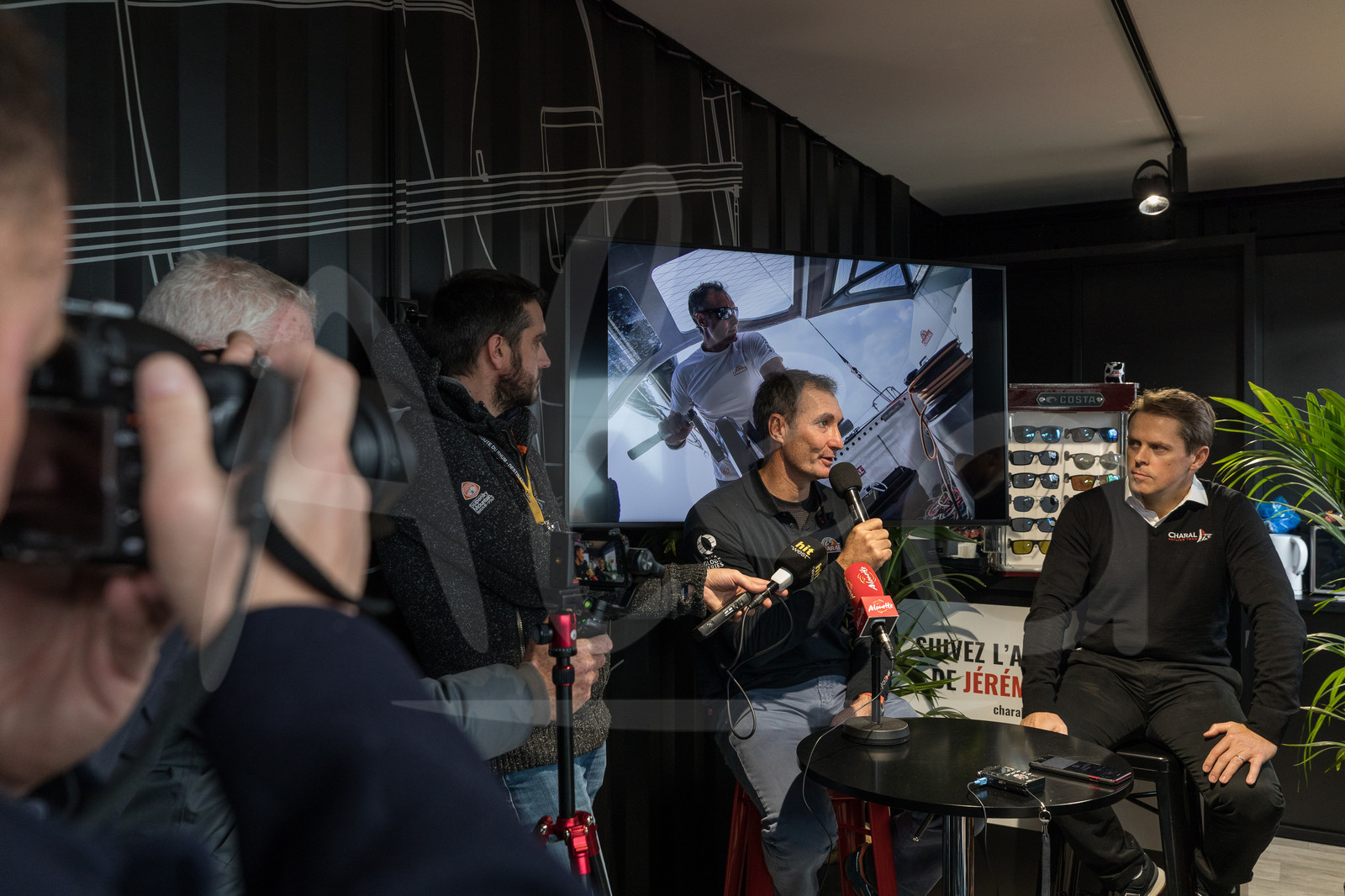 | Description | Media and Matthieu Bigard during the press conference Charal, skipper Jeremie Beyou, during the pre-start of the Route du Rhum 2018, on November 1st, 2018 in St-Malo, north Brittany, France - Photo Jean-Marie Liot / Alea |