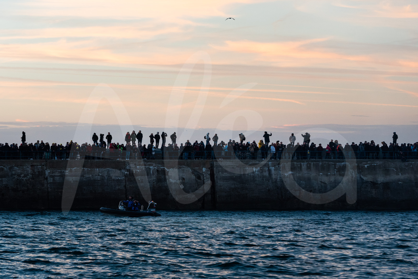 Description | General view of the public while class 40 are leaving pontoons to pass a lock towards moorings, they will spend the night before the start of the Route du Rhum 2018, on November 3rd, 2018 in St-Malo, north Brittany, France - Photo Jean-Louis Carli / Alea |