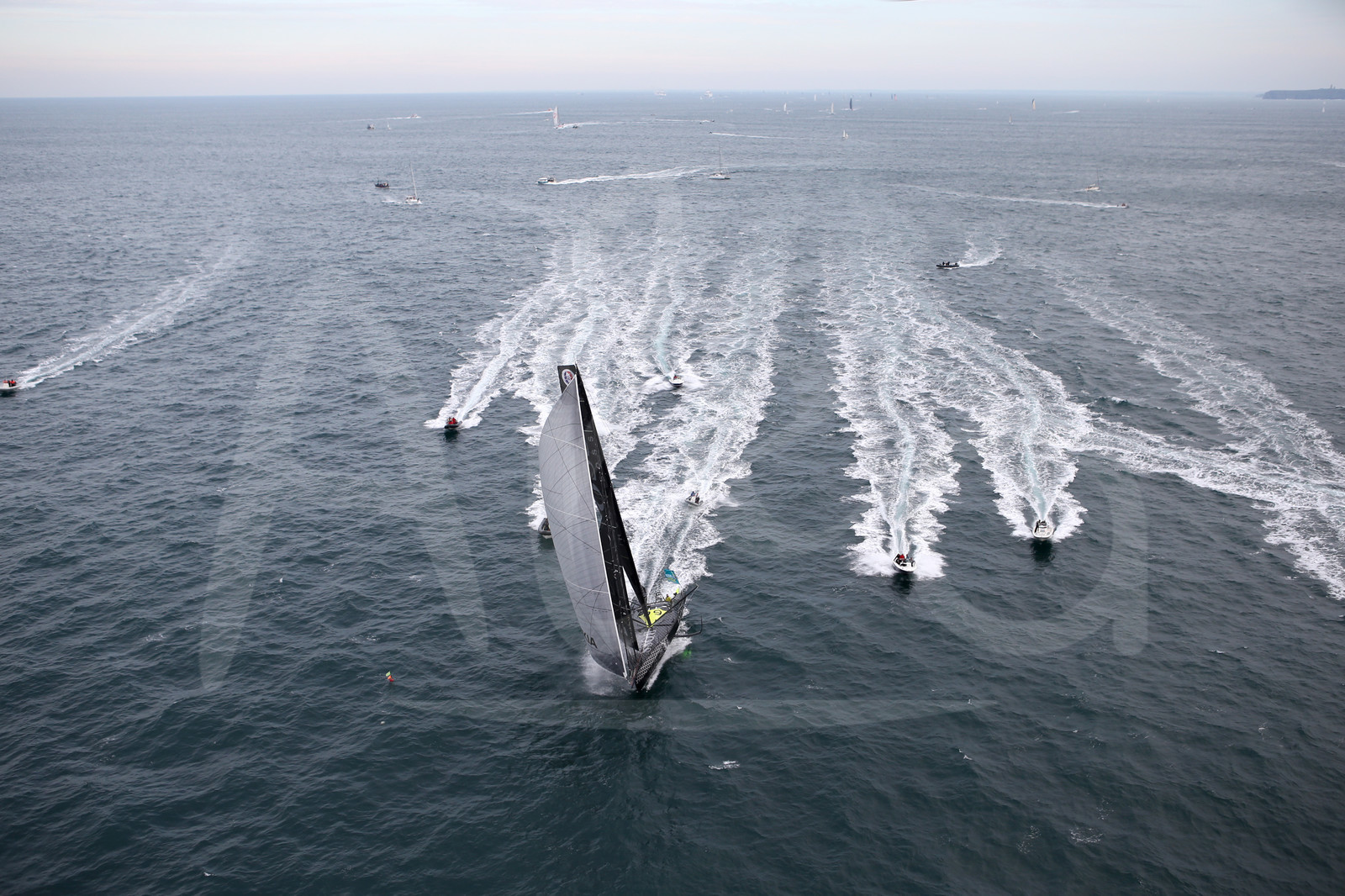 Description | imoca Hugo Boss, during start of the Route du Rhum 2018, on November 4th, 2018 in St-Malo, north Brittany, France - Photo Jean-Marie Liot / Alea |