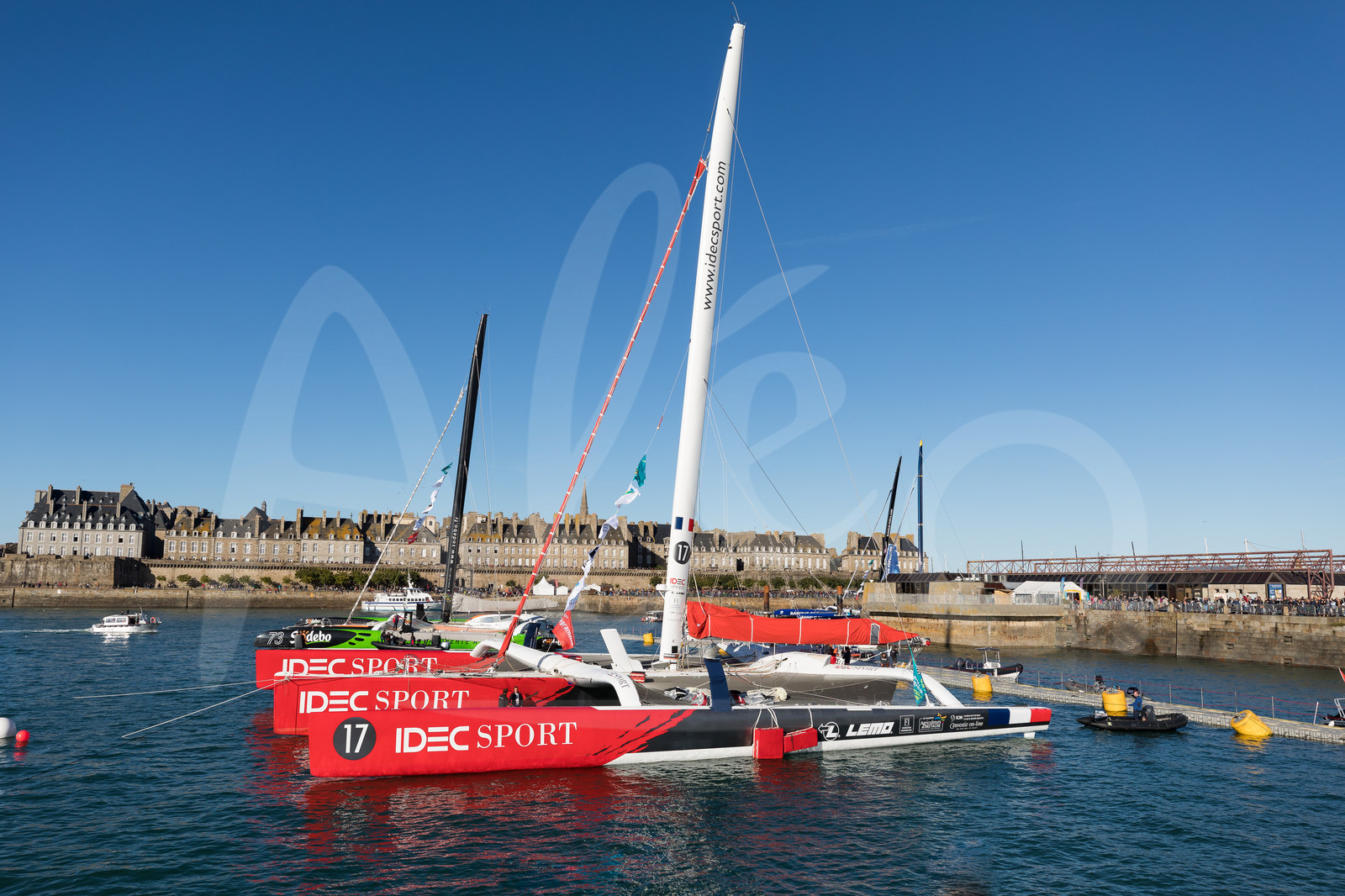 Description | ultime IDEC Sport, skipper Francis Joyon, at pontoon, during the pre-start of the Route du Rhum 2018, on November 2nd, 2018 in St-Malo, north Brittany, France - Photo Jean-Marie Liot / Alea |