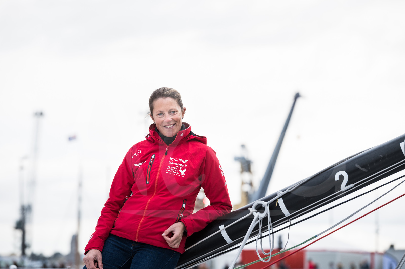 Description | Portrait skipper Samantha Davies, Initiatives-Cœur, during the pre-start of the Route du Rhum 2018, on November 1st, 2018 in St-Malo, north Brittany, France - Photo Jean-Louis Carli / Alea |