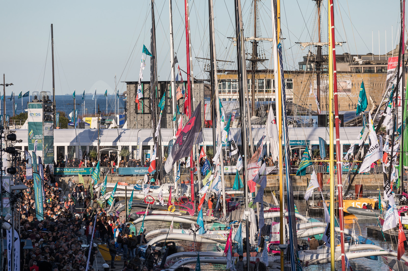 | Description | Public on Multi 50 pontoons during the pre-start of the Route du Rhum 2018, on November 2nd, 2018 in St-Malo, north Brittany, France - Photo Jean-Marie Liot / Alea |